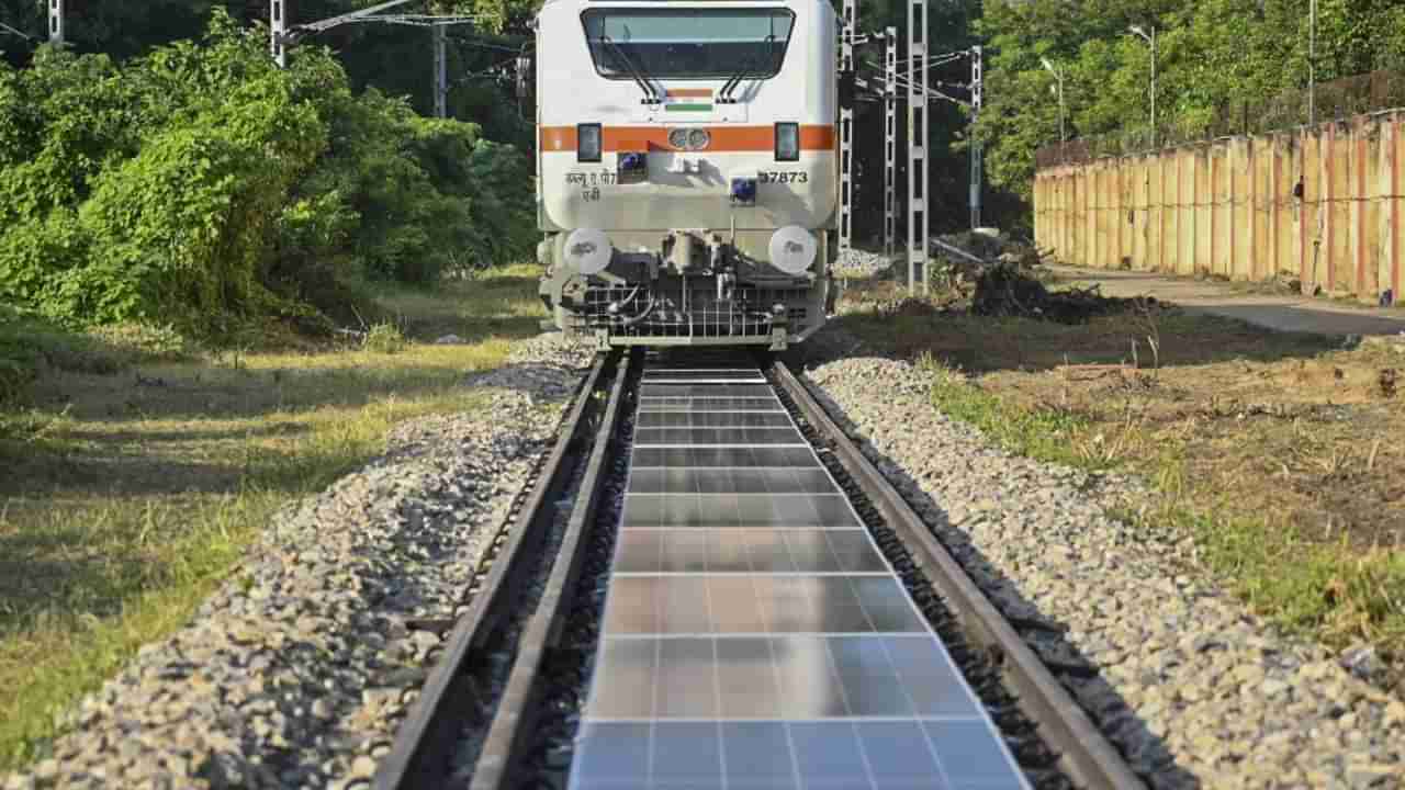 ನವದೆಹಲಿ, ಆಗಸ್ಟ್ 19: ಭಾರತದಲ್ಲಿ ರೈಲ್ವೆ ಹಳಿಗಳ ಮಧ್ಯೆ ಸೋಲಾರ್ ಪ್ಯಾನಲ್ ಅಳವಡಿಸುವ ಪ್ರಯೋಗ ನಡೆದಿದೆ. ವಾರಾಣಸಿಯಲ್ಲಿ ಬನಾರಸ್ ಲೋಕೋಮೋಟಿವ್ ವರ್ಕ್ಸ್ (ಬಿಎಲ್ಡಬ್ಲ್ಯು) ವಾರಾಣಸಿಯಲ್ಲಿ ರೈಲ್ವೆ ಟ್ರ್ಯಾಕ್ಗಳ ಮಧ್ಯೆ ಸೋಲಾರ್ ಪ್ಯಾನಲ್ ಸಿಸ್ಟಂ ಅಳವಡಿಸಿದೆ. ಭಾರತೀಯ ರೈಲ್ವೇಸ್ (Indian Railways) ಸದ್ಯ 70 ಮೀಟರ್ ಟ್ರ್ಯಾಕ್ನಲ್ಲಿ ಈ ಪ್ರಯೋಗ ನಡೆಸಿದೆ. ಈ 70 ಮೀಟರ್ ದೂರದ ಹಳಿಯಲ್ಲಿ 28 ಸೋಲಾರ್ ಪ್ಯಾನಲ್ಗಳನ್ನು ಅಳವಡಿಸಿದೆ. ಇದರಲ್ಲಿ 15 KWp ವಿದ್ಯುತ್ ಉತ್ಪಾದನಾ ಸಾಮರ್ಥ್ಯ ಇರುತ್ತದೆ.