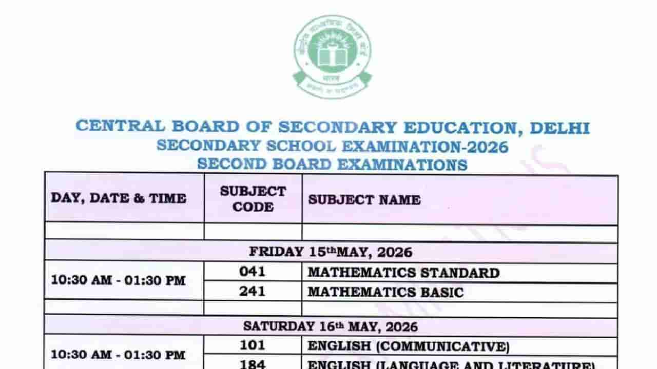 ಕೇಂದ್ರೀಯ ಪ್ರೌಢ ಶಿಕ್ಷಣ ಮಂಡಳಿಯು (CBSE) 2026ರ ಸಾಲಿನ 10ನೇ ತರಗತಿಯ ಎರಡನೇ ಬಾರಿಯ ಬೋರ್ಡ್ ಪರೀಕ್ಷೆಯ ದಿನಾಂಕ ಪಟ್ಟಿಯನ್ನು (Date Sheet) ಅಧಿಕೃತವಾಗಿ ಬಿಡುಗಡೆ ಮಾಡಿದೆ. ಮೊದಲ ಪ್ರಯತ್ನದಲ್ಲಿ ಅಂಕಗಳನ್ನು ಸುಧಾರಿಸಿಕೊಳ್ಳಲು ಬಯಸುವ ಅಥವಾ ಪರೀಕ್ಷೆಯಲ್ಲಿ ಹಿನ್ನಡೆ ಅನುಭವಿಸಿದ ವಿದ್ಯಾರ್ಥಿಗಳಿಗೆ ಇದು ಸುವರ್ಣವಕಾಶವಾಗಲಿದೆ.
