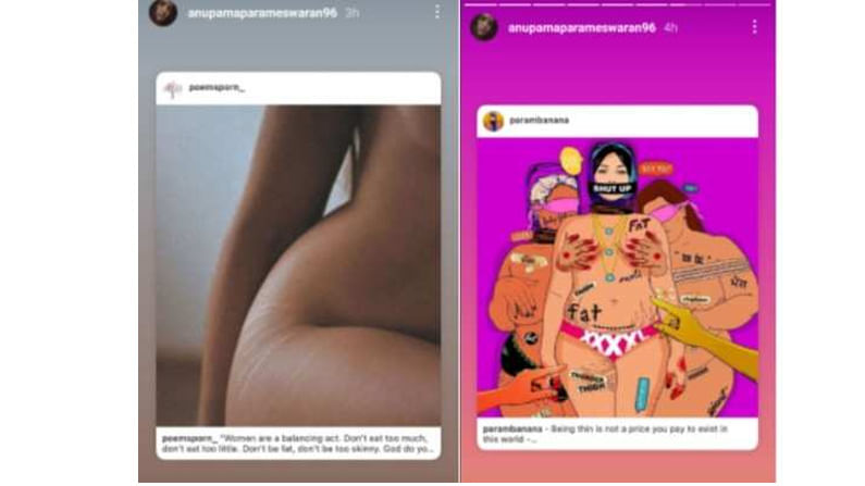 ಪೇಜ್ ಒಂದರಲ್ಲಿ ಹಾಕಲಾದ ಪೋಸ್ಟ್ಅನ್ನು ಅನುಪಮಾ ತಮ್ಮ ಸ್ಟೋರಿಯಲ್ಲಿ ಹಂಚಿಕೊಂಡಿದ್ದಾರೆ. ನ್ಯೂಡ್ ಫೋಟೋ ಇದಾಗಿದ್ದು, ಈ ಬಗ್ಗೆ ಅವರು ಒಂದಷ್ಟು ವಿಚಾರಗಳನ್ನು ಬರೆದುಕೊಂಡಿದ್ದಾರೆ. ‘ಮಹಿಳೆಯ ಬಣ್ಣ ಮತ್ತು ಅವರ ಗಾತ್ರದ ಆಧಾರದ ಮೇಲೆ ತಾರತಮ್ಯ ಮಾಡುವುದು ಸರಿಯಲ್ಲ. ಮಹಿಳೆಯರು ತೆಳ್ಳಗೆ ಹಾಗೂ ದಪ್ಪ ಇದ್ದಾರೆ ಅಥವಾ ಬಿಳಿ ಹಾಗೂ ಕಪ್ಪಗಿದ್ದಾರೆ ಎಂದು ಟೀಕಸಲಾಗುತ್ತಿದೆ ಎಂದು ಈ ಪೋಸ್ಟ್ ಹೇಳುತ್ತಿದೆ. ಕೆಲವರು ಮಹಿಳೆಯರ ನೋಟವನ್ನು ನೋಡಿ ಅವರು ಹೇಗೆ ಎಂದು ನಿರ್ಧರಿಸುತ್ತಾರೆ. ಇದು ಸರಿಯಲ್ಲ’ ಎಂದಿದ್ದಾರೆ ಅನುಪಮಾ. ಈ ಮೂಲಕ ಜನರಲ್ಲಿ ಜಾಗೃತಿ ಮೂಡಿಸುವ ಕೆಲಸವನ್ನು ಅವರು ಮಾಡಿದ್ದಾರೆ. ನಂತರ ಸ್ಟೋರಿಯಿಂದ ಈ ಫೋಟೋ ತೆಗೆದು ಹಾಕಲಾಗಿದೆ.