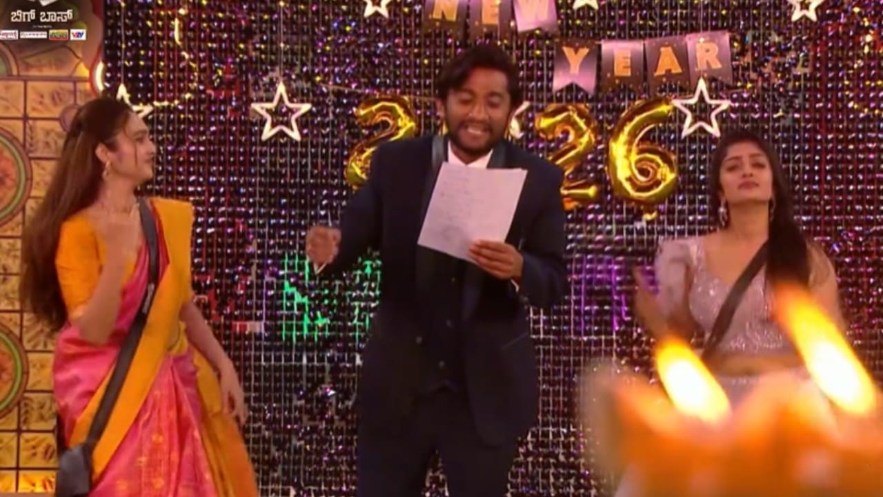 ಬಿಗ್ಬಾಸ್ ಮನೆಯಲ್ಲಿ ಹೊಸ ವರ್ಷಾಚರಣೆ ಸಖತ್ ಆಗಿತ್ತು. ಗಿಲ್ಲಿಯ ರ್ಯಾಪ್ ಹಾಡಿನ ಬಳಿಕ ಮನೆಯ ಮಹಿಳಾ ಸದಸ್ಯರೆಲ್ಲ ಸೇರಿಕೊಂಡು ಬಿಗ್ಬಾಸ್ ಥೀಮ್ ಹಾಡಿಗೆ ಡ್ಯಾನ್ಸ್ ಮಾಡಿ ರಂಜಿಸಿದರು. ಬಳಿಕ ಮನೆಯ ಪುರುಷ ಸದಸ್ಯರೆಲ್ಲ ಮಹಿಳೆಯರು ಧರಿಸುವ ಹೈ ಹೀಲ್ಸ್ ಧರಿಸಿ ರ್ಯಾಂಪ್ ವಾಕ್ ಮಾಡಿದರು. ಇದು ಮಜವಾಗಿತ್ತು. ಬಿಗ್ಬಾಸ್, ಹೊಸ ವರ್ಷದ ಪ್ರಯುಕ್ತ ಮನೆಯ ಸದಸ್ಯರಿಗೆಲ್ಲ ರುಚಿಯಾದ ಊಟ ಕಳಿಸಿದ್ದರು. ಊಟವೆಲ್ಲ ಆದ ಮೇಲೆ ಪಟಾಕಿಗಳನ್ನು ಹೊಡೆದು ಮನೆ ಸದಸ್ಯರು ಸಂಭ್ರಮಿಸಿದರು. ಬಳಿಕ ಕೆಲವು ಹಾಡುಗಳನ್ನು ಹಾಕಿ ಪಾರ್ಟಿ ರೀತಿಯ ವಾತಾವರಣವನ್ನು ಅನ್ನು ಬಿಗ್ಬಾಸ್ ಮನೆಯಲ್ಲೇ ಸೃಷ್ಟಿಸಲಾಯ್ತು. ಸ್ಪರ್ಧಿಗಳೆಲ್ಲ ಹಾಡುತ್ತಾ, ಕುಣಿಯುತ್ತಾ ಹೊಸ ವರ್ಷವನ್ನು ಸ್ವಾಗತಿಸಿದರು.
