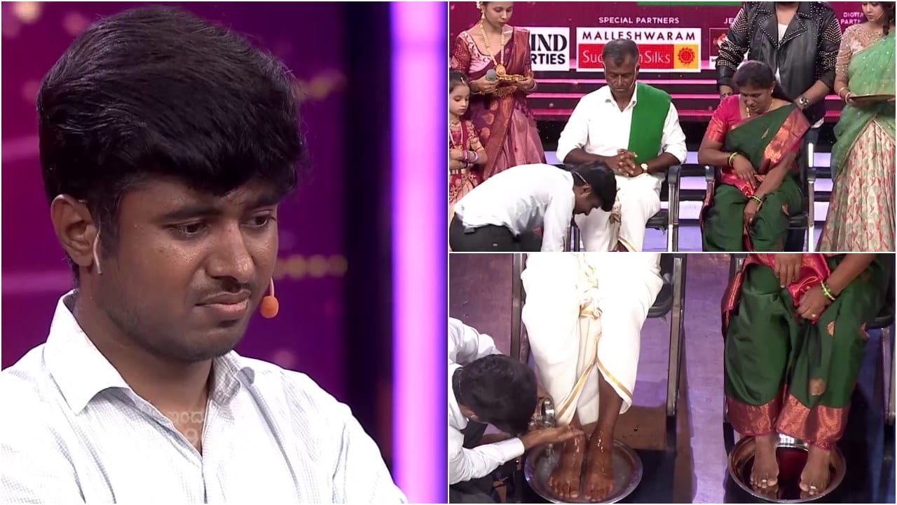 ‘ಭರ್ಜರಿ ಬ್ಯಾಚುಲರ್ಸ್’ ವೇದಿಕೆ ಮೇಲೆ ತಂದೆ-ತಾಯಿಯ ಪಾದ ಪೂಜೆ ಮಾಡಿದ ಡ್ರೋನ್ ಪ್ರತಾಪ್