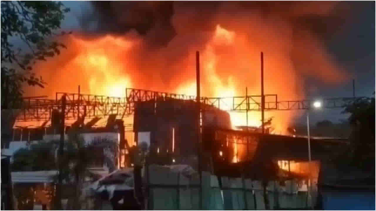 VIDEO | Mumbai: Fire breaks out on the set of TV show ‘Anupamaa’ at Film City, Goregaon. Further details awaited.