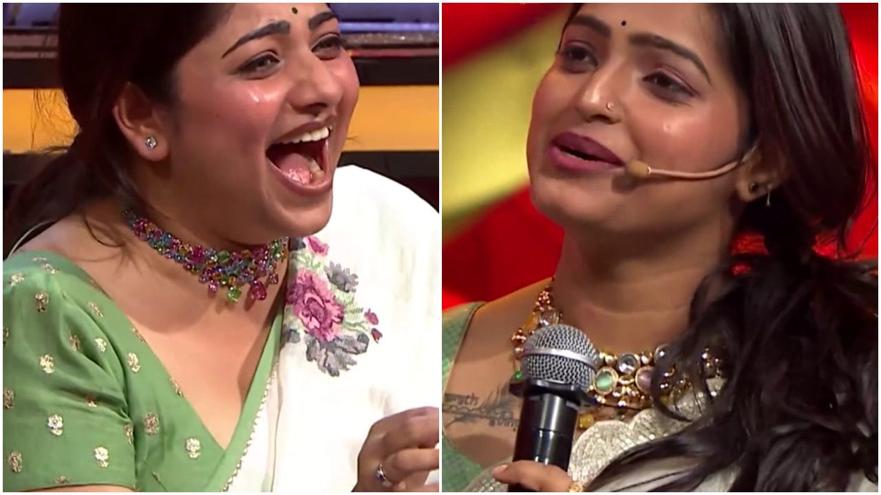 ಕಳೆದ ವಾರ ಡ್ಯಾನ್ಸ್ ಕರ್ನಾಟಕ ಡ್ಯಾನ್ಸ್-2025 ಹಾಗೂ ಕಿಲಾಡಿ ಜೂನಿಯರ್ಸ್ ‘ಮಹಾಸಂಗಮ’ ರಾತ್ರಿ 7:30ಕ್ಕೆ ಪ್ರಸಾರ ಕಂಡಿದೆ. ಈ ವೇದಿಕೆ ಮೇಲೆ ವಸಂತ್ ಅವರ ಗೆಟಪ್ನಲ್ಲಿ ಬಂದರು ಸ್ಪರ್ಧಿಯೊಬ್ಬರು. ಆಗ ರಚಿತಾ ರಾಮ್ ಅವರು, ‘ವಸಂತ ವಸಂತ’ ಹಾಡನ್ನು ಹಾಡಿದರು. ಈ ಹಾಡನ್ನು ಕೇಳಿ ನಕಲಿ ವಸಂತ್ ಮಾಸ್ಟರ್ಸ್ ನಾಚಿ ನೀರಾದರು ಎಂದರೂ ತಪ್ಪಾಗಲಾರದರು. ಈ ವೇಳೆ ರಚಿತಾ ರಾಮ್ ಕೂಡ ನಕ್ಕರು.