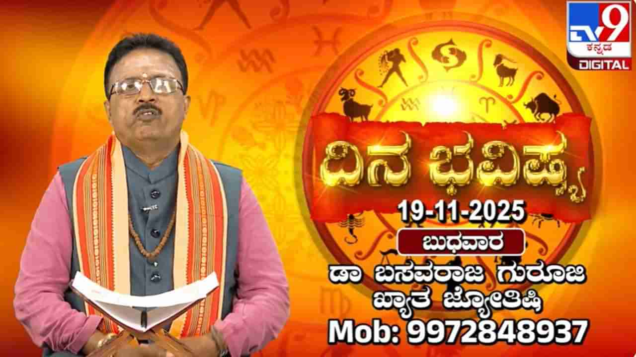 ಖ್ಯಾತ ಜ್ಯೋತಿಷಿ ಮತ್ತು ವಾಸ್ತು ಶಾಸ್ತ್ರಜ್ಞ ಡಾ. ಬಸವರಾಜ ಗುರೂಜಿ ಅವರು ಟಿವಿ9 ಡಿಜಿಟಲ್ ವಾಹಿನಿಯ ಮೂಲಕ 2025ರ ನವೆಂಬರ್ 19ರ ದಿನ ಭವಿಷ್ಯವನ್ನು ಪ್ರಸ್ತುತಪಡಿಸಿದ್ದಾರೆ. ಬುಧವಾರದ ಈ ದಿನ ವಿಶ್ವಾ ವಸುನಾಮ ಸಂವತ್ಸರ, ಕಾರ್ತಿಕ ಮಾಸದ ಕೃಷ್ಣಪಕ್ಷ ಚತುರ್ದಶಿ, ಸ್ವಾತಿ ನಕ್ಷತ್ರ ಸೌಭಾಗ್ಯ ಯೋಗದಿಂದ ಕೂಡಿದೆ.