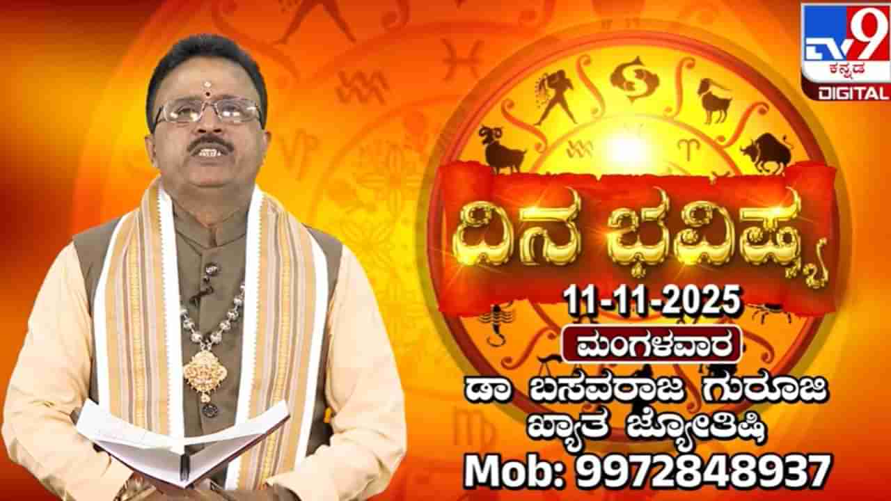 ಖ್ಯಾತ ಜ್ಯೋತಿಷಿ ಮತ್ತು ವಾಸ್ತು ಶಾಸ್ತ್ರಜ್ಞ ಡಾ. ಬಸವರಾಜ ಗುರೂಜಿ ಅವರು 11 ನವೆಂಬರ್ 2025ರ ಮಂಗಳವಾರದ ದಿನಭವಿಷ್ಯವನ್ನು ನೀಡಿದ್ದಾರೆ. ಪುಷ್ಯ ನಕ್ಷತ್ರದಲ್ಲಿ ಚಂದ್ರನ ಸಂಚಾರದೊಂದಿಗೆ, ದ್ವಾದಶ ರಾಶಿಗಳ ಆರ್ಥಿಕ, ವೃತ್ತಿ, ಸಂಬಂಧಗಳು ಮತ್ತು ಆರೋಗ್ಯದ ಕುರಿತು ವಿವರವಾದ ಮಾಹಿತಿಯನ್ನು ಒದಗಿಸಿದ್ದಾರೆ. ಪ್ರತಿಯೊಂದು ರಾಶಿಯವರಿಗೂ ಅದೃಷ್ಟದ ಬಣ್ಣ, ಸಂಖ್ಯೆ ಹಾಗೂ ಮಂತ್ರಗಳನ್ನು ತಿಳಿಸಿದ್ದಾರೆ.