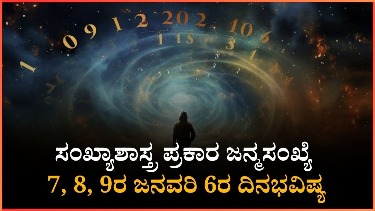 ಜನ್ಮಸಂಖ್ಯೆಗೆ 7, 8, 9ರ ದಿನಭವಿಷ್ಯವನ್ನು ನೀಡಲಾಗಿದೆ. ಜನ್ಮಸಂಖ್ಯೆ ಆಧಾರದಲ್ಲಿ ಜನವರಿ 6ರ ಮಂಗಳವಾರದ ದಿನ ಭವಿಷ್ಯ ಹೇಗಿದೆ ಎಂಬ ಮಾಹಿತಿ ಇಲ್ಲಿದೆ.