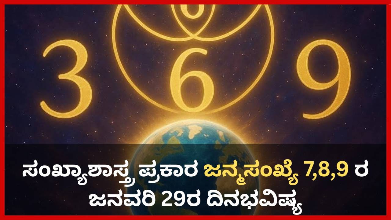 ಜನ್ಮಸಂಖ್ಯೆ 7, 8, 9ರ ದಿನಭವಿಷ್ಯವನ್ನು ನೀಡಲಾಗಿದೆ. ಜನ್ಮಸಂಖ್ಯೆ ಆಧಾರದಲ್ಲಿ ಜನವರಿ 28ರ ಗುರುವಾರದ ದಿನ ಭವಿಷ್ಯ ಹೇಗಿದೆ ಎಂಬ ಮಾಹಿತಿ ಇಲ್ಲಿದೆ. ಈ ದಿನ ನಿಮ್ಮ ಅದೃಷ್ಟ ಹೇಗಿರಲಿದೆ, ಯಾವ ಸವಾಲುಗಳನ್ನು ಎದುರಿಸಬೇಕಾಗಬಹುದು ಮತ್ತು ಅದಕ್ಕೆ ಪರಿಹಾರಗಳೇನು ಎಂದು ವಿವರವಾಗಿ ವಿವರಿಸಲಾಗಿದೆ.