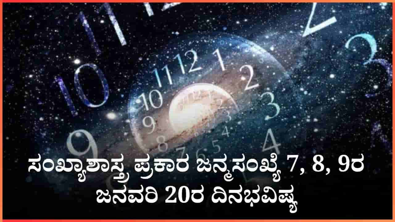 ಜನ್ಮಸಂಖ್ಯೆ 7, 8, 9ರ ದಿನಭವಿಷ್ಯವನ್ನು ನೀಡಲಾಗಿದೆ. ಜನ್ಮಸಂಖ್ಯೆ ಆಧಾರದಲ್ಲಿ ಜನವರಿ 20ರ ಮಂಗವಾರದ ದಿನ ಭವಿಷ್ಯ ಹೇಗಿದೆ ಎಂಬ ಮಾಹಿತಿ ಇಲ್ಲಿದೆ.