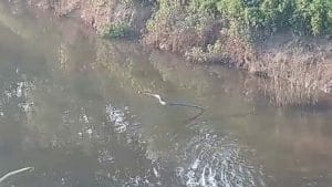 ಯಾರ ಗೋಜಿಗೂ ಹೋಗದೆ, ತನ್ನ ಪಾಡಿಗೆ ತಾನು ಸರಾಗವಾಗಿ ಈಜುತ್ತಾ ಸಾಗುತ್ತಿರುವ ದೃಶ್ಯ ಸ್ಥಳೀಯರಲ್ಲಿ ಅಚ್ಚರಿ ಮೂಡಿಸಿತು. ಸುಮಾರು 12 ಅಡಿ ಉದ್ದದ ಕಾಳಿಂಗನನ್ನು ನೋಡಿ ಜನರು ಆಶ್ಚರ್ಯಚಕಿತರಾದರು. ಕಾಳಿಂಗನ ಸ್ವಚ್ಛಂದ ಓಡಾಟವನ್ನು ತಮ್ಮ ಮೊಬೈಲ್ನಲ್ಲಿ ಸೆರೆಹಿಡಿದರು.