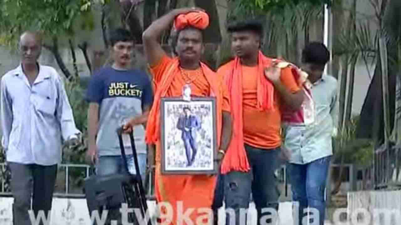 ಪುನೀತ್ ರಾಜ್ಕುಮಾರ್ ಮಾಲೆ ಧರಿಸಿ ಇರುಮುಡಿ ಕಟ್ಟು ತಲೆಮೇಲೆ ಹೊತ್ತು ಸಮಾಧಿಗೆ ನಡೆದು ಬಂದ ಅಭಿಮಾನಿ