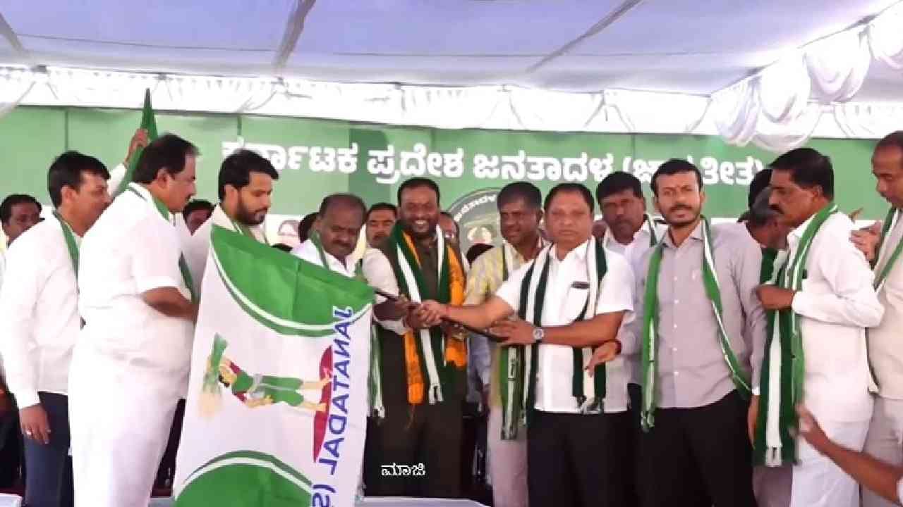 ಭಾರೀ ವಿರೋಧದ ನಡುವೆಯೂ ಸ್ವಾಭಿಮಾನ ಜನತಾ ಪಕ್ಷದ ಮುಖಂಡ ಇದೀಗ ಮಿತ್ರ ಪಕ್ಷ ಜೆಡಿಎಸ್ (JDS) ಸರ್ಪಡೆಯಾಗಿದ್ದಾರೆ. 2023ರ ಕರ್ನಾಟಕ ವಿಧಾನಸಭೆ ಚುನಾವಣೆಯಲ್ಲಿ ಬಿಜೆಪಿ ವಿರುದ್ಧ ಬಂಡಾಯವಾಗಿ ಸ್ಪರ್ಧೆ ಮಾಡಿದ್ದ ನಾಯಕ ಇದೀಗ ಜೆಡಿಎಸ್ ಸೇರ್ಪಡೆಯಾಗಿದ್ದಾರೆ. ಬಿಜೆಪಿಯೊಂದಿಗೆ ಮೈತ್ರಿ ಇದ್ದರೂ ಸಹ ಬಂಡಾಯ ನಾಯಕ, ಕೇಂದ್ರ ಸಚಿವ ಎಚ್ಡಿ ಕುಮಾರಸ್ವಾಮಿ ಸಮ್ಮುಖದಲ್ಲಿ ಜೆಡಿಎಸ್ ಸೇರ್ಪಡೆಗೊಂಡಿದ್ದಾರೆ.