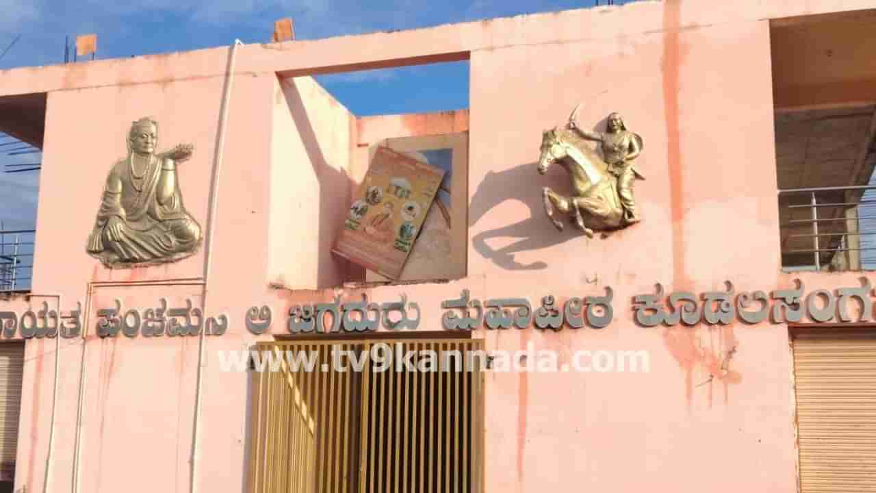 ಕೂಡಲಸಂಗಮದ ಪಂಚಮಸಾಲಿ ಪೀಠದ ಬಾಗಿಲುಗಳಿಗೆ ಬೀಗ ಹಾಕಿರುವುದು
