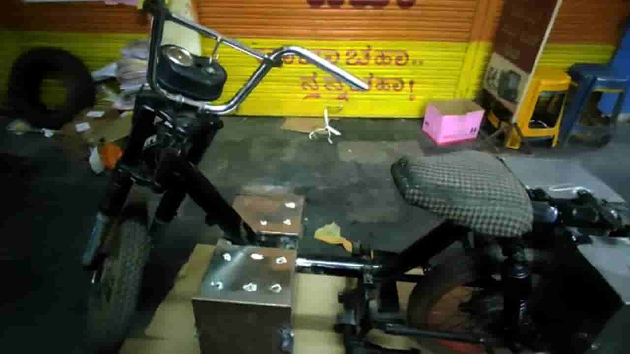 ಎಕ್ಸೆಲ್ ಬೈಕ್ ಹಾಗೂ ಕನ್ವರ್ಟರ್, ಎಲೆಕ್ಟ್ರಿಕ್ ಮೋಟರ್ನಿಂದ ಈ ಬೈಕ್ನ ಸಿದ್ಧಪಡಿಸಿದ್ದು, 35 ಕಿಲೋಮೀಟರ್ ವೇಗದಲ್ಲಿ ಓಡುತ್ತದೆ. ರಿವರ್ಸ್ ಬರುವಂತೆ ಬೈಕ್ ತಯಾರಿ ಮಾಡಲಾಗಿದೆ. ಸದ್ಯ ಈ ಬೈಕ್ ನೋಡಲು ಜನರು ಬರುತ್ತಿದ್ದಾರೆ.