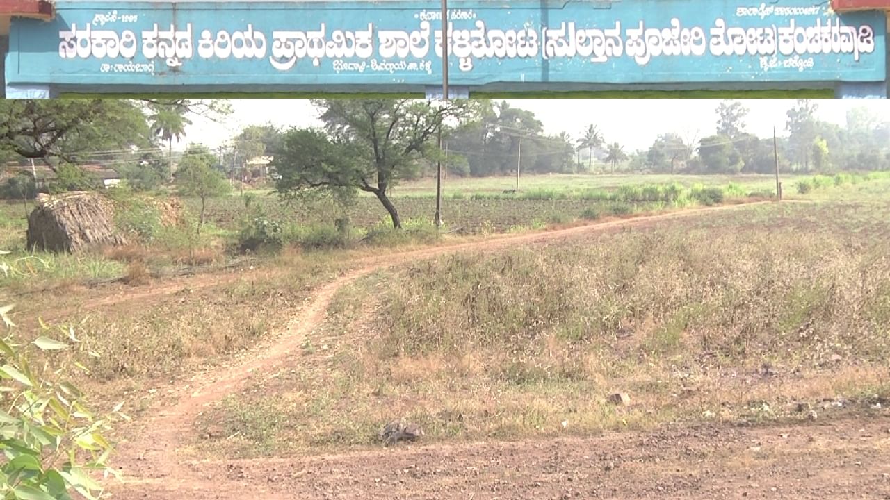 ಊರ ಹೊರಗಿರುವ ಈ ಸರ್ಕಾರಿ ಶಾಲೆಗೆ ಹೋಗಲು ರಸ್ತೆಯೇ ಇಲ್ಲ. ಈ ಹಿಂದೆ 18 ಅಡಿ ರಸ್ತೆ ನಿರ್ಮಿಸಲಾಗಿತ್ತು. ಅದನ್ನ ಅಕ್ಕಪಕ್ಕದ ಜಮೀನಿನವರು ಅದು ತಮ್ಮದು ಜಾಗ ಅಂತಿದ್ದಾರೆ. ಇದರಿಂದ ಮಕ್ಕಳು ನಡೆದಾಡುವ ರಸ್ತೆಗೆ ಮುಳ್ಳಿನ ಗಿಡ ಹಾಕಿ ಬಂದ್ ಮಾಡಿದ್ದಾರೆ. ಒಂದರಿಂದ ಐದನೇ ತರಗತಿ ವರೆಗೆ ಸುಮಾರು 70 ಮಕ್ಕಳು ಇಲ್ಲಿ ಕಲಿಯುತ್ತಿದ್ದಾರೆ.