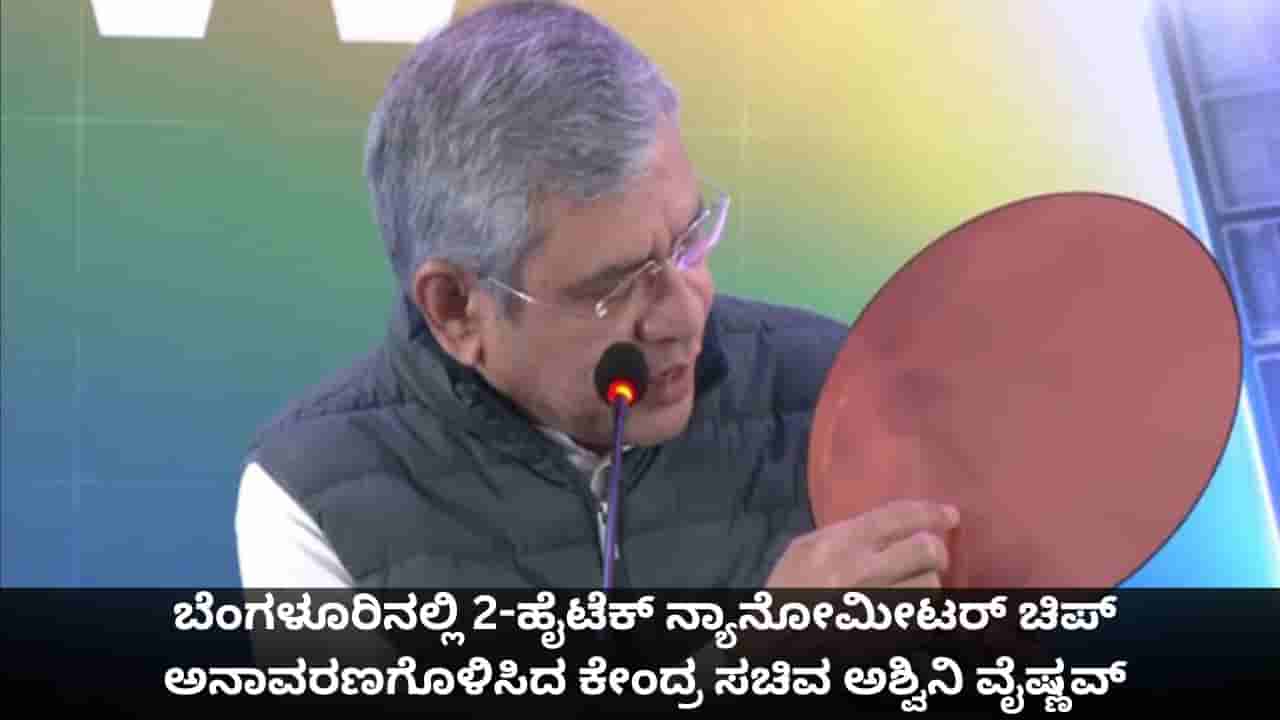 ಬೆಂಗಳೂರು, ಫೆಬ್ರವರಿ 7: ಕೇಂದ್ರ ಎಲೆಕ್ಟ್ರಾನಿಕ್ಸ್ ಮತ್ತು ಐಟಿ ಸಚಿವ ಅಶ್ವಿನಿ ವೈಷ್ಣವ್ (Ashwini Vaishnaw) ಇಂದು (ಶನಿವಾರ) ಬೆಂಗಳೂರಿನಲ್ಲಿ ಕ್ವಾಲ್ಕಾಮ್ ಟೆಕ್ನಾಲಜೀಸ್ ತಯಾರಿಸಿದ ಹೈಟೆಕ್ 2-ನ್ಯಾನೊಮೀಟರ್ ಚಿಪ್ ಅನ್ನು ಅನಾವರಣಗೊಳಿಸಿದರು. ಈ ಸಂದರ್ಭದಲ್ಲಿ ಮಾತನಾಡಿದ ಅವರು, “ನಮ್ಮ ದೇಶವು ಸೆಮಿಕಂಡಕ್ಟರ್ ಉತ್ಪಾದನಾ ವಿನ್ಯಾಸದಲ್ಲಿ ಪ್ರಮುಖ ಪ್ರಗತಿಯನ್ನು ಸಾಧಿಸುತ್ತಿದೆ. ಭಾರತದಲ್ಲಿ ಇದು ಹೊಸ ಉದ್ಯಮವಾಗಿ ರೂಪ ತಳೆಯುತ್ತಿದೆ” ಎಂದು ಹೇಳಿದರು. ಚಿಪ್ ವೇಫರ್ ಅನ್ನು ಕೈಯಲ್ಲಿ ಹಿಡಿದು ತೋರಿಸಿದ ಸಚಿವ ಅಶ್ವಿನಿ ವೈಷ್ಣವ್ ಅದರ ಸಾಮರ್ಥ್ಯಗಳು ಮತ್ತು ಅದರಲ್ಲಿ ಒಳಗೊಂಡಿರುವ ಉತ್ಪಾದನೆಯನ್ನು ವಿವರಿಸಿದರು.