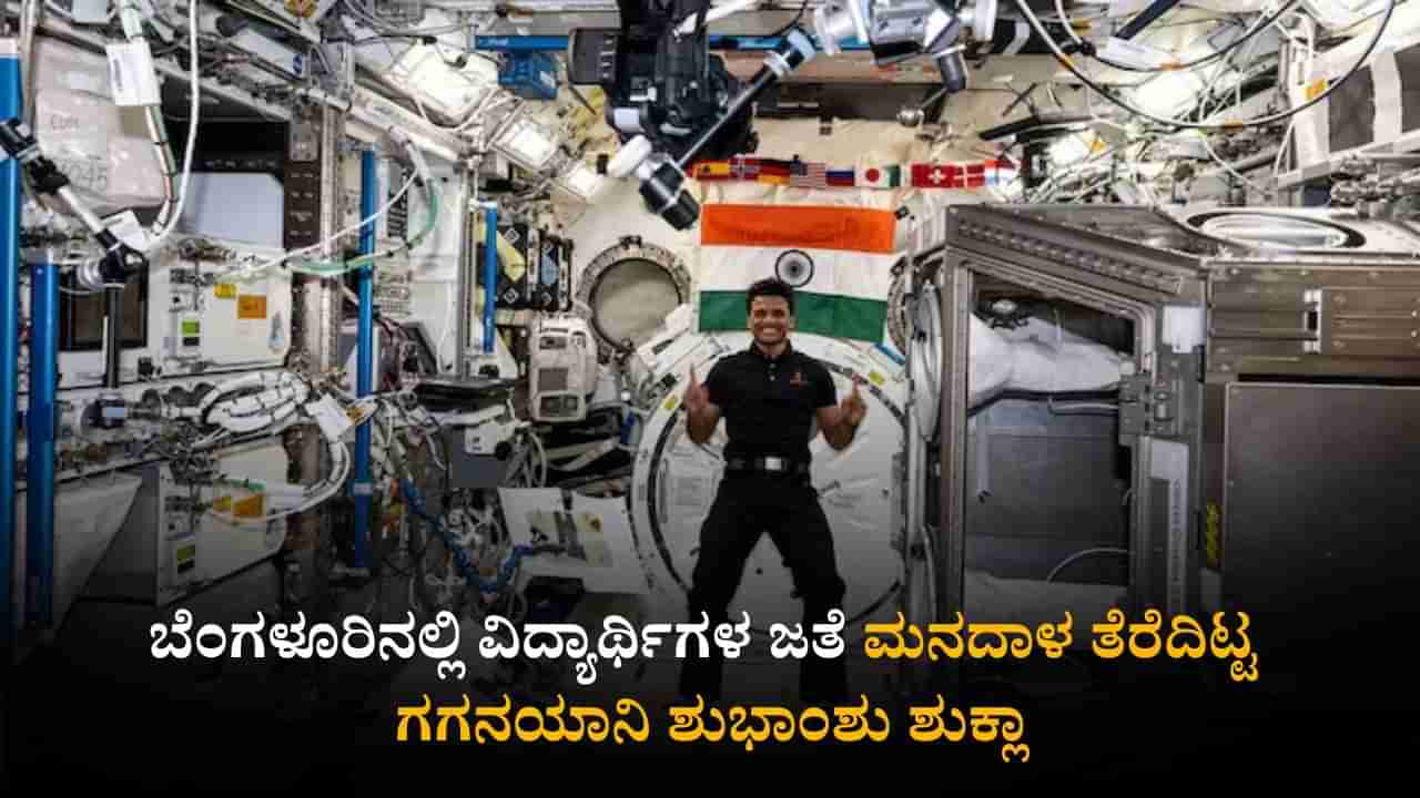 ಬೆಂಗಳೂರು, ನವೆಂಬರ್ 25: ಬೆಂಗಳೂರಿನ ನೆಹರು ತಾರಾಲಯದಲ್ಲಿ ಗಗನಯಾನಿ ಶುಭಾಂಶು ಶುಕ್ಲಾ (Shubhanshu Shukla) ಜೊತೆ ವಿದ್ಯಾರ್ಥಿಗಳ ಸಂವಾದ ಕಾರ್ಯಕ್ರಮ ನಡೆಯಿತು. ವಿಜ್ಞಾನ ಹಾಗೂ ತಂತ್ರಜ್ಞಾನ ಕ್ಷೇತ್ರದಲ್ಲಿ ವಿದ್ಯಾರ್ಥಿಗಳ ಆಸಕ್ತಿ ಹೆಚ್ಚಿಸುವ ಉದ್ದೇಶದಿಂದ ಆಯೋಜಿಸಲಾದ ಈ ಕಾರ್ಯಕ್ರಮದಲ್ಲಿ ರಾಜ್ಯದ ಶಿಕ್ಷಣ ಸಚಿವ ಮಧು ಬಂಗಾರಪ್ಪ ಅವರು ಕೂಡ ಹಾಜರಿದ್ದರು. ಮಕ್ಕಳ ಕುತೂಹಲ ಭರಿತ ಪ್ರಶ್ನೆಗಳಿಗೆ ಉತ್ತರಿಸಿದ ಶುಕ್ಲಾ, ಬಾಹ್ಯಾಕಾಶದ ತಮ್ಮ ಅನುಭವವನ್ನು ಹಂಚಿಕೊಂಡರು.