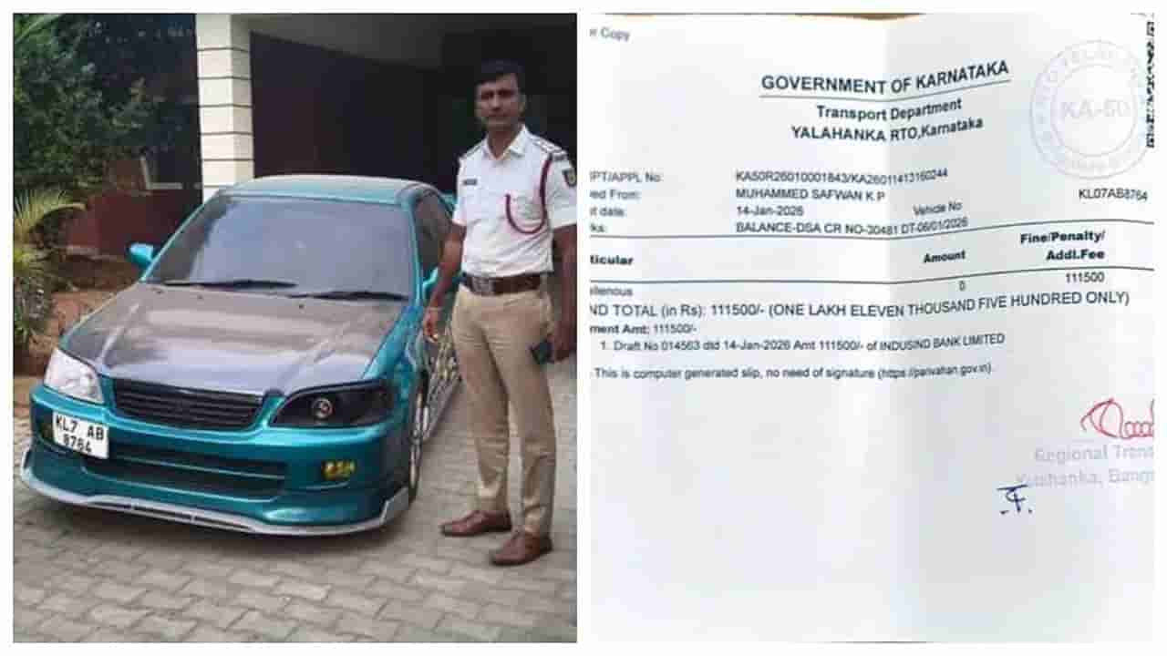 ಬೆಂಗಳೂರು, ಜ.16: ಬೆಂಗಳೂರಿನಲ್ಲಿ ಸಂಚಾರ ನಿಯಮ (Bangalore traffic fine) ಉಲ್ಲಂಘನೆ ಮಾಡಿ ದಂಡ ಹಾಕಿಸಿಕೊಳ್ಳುವುದು ಒಂದು ಕಡೆ ಹೆಚ್ಚಾಗುತ್ತಿದ್ದಾರೆ. ಮತ್ತೊಂದು ಕಡೆ ವಾಹನ ಮಾಡಿಫೈ ಮಾಡಿ ದಂಡ ಹಾಕಿಕೊಳ್ಳುತ್ತಿದ್ದಾರೆ. ಇದೀಗ ಬೆಂಗಳೂರಿನಲ್ಲಿ ವಿದ್ಯಾರ್ಥಿಯೊಬ್ಬ 70 ಸಾವಿರ ಕಾರಿಗೆ 1.11 ಲಕ್ಷ ರೂ. ದಂಡ ಹಾಕಿಸಿಕೊಂಡಿದ್ದಾನೆ. ಈ ಸುದ್ದಿ ಸಾಮಾಜಿಕ ಜಾಲತಾಣದಲ್ಲಿ ಭಾರೀ ಚರ್ಚೆ ಕಾರಣವಾಗಿದೆ. ಅಷ್ಟಕ್ಕೂ ಈ ವಿದ್ಯಾರ್ಥಿಗೆ ಅಷ್ಟೊಂದು ದಂಡ ಯಾಕೆ ಹಾಕಿದ್ದಾರೆ ಗೊತ್ತಾ? ಈ ಯುವಕ ತನ್ನ ಕಾರಿನ ಸೈಲೆನ್ಸರ್ನ್ನು ಅಕ್ರಮವಾಗಿ ಮಾಡಿಫೈ ಮಾಡಿದ್ದಾನೆ ಎಂದು ದಂಡ ಹಾಕಿದ್ದಾರೆ. ಈ ಸೈಲೆನ್ಸರ್ ಹಾಕಿದ ಕಾರಣ ವಿಪರೀತ ಶಬ್ದ ಮಾಲಿನ್ಯ ಆಗುತ್ತಿದೆ. ಜತೆಗೆ ಸಾರ್ವಜನಿಕರಿಗೆ ತೊಂದರೆ ಆಗುತ್ತಿದೆ ಎಂದು ಪೊಲೀಸರು ಈ ವಿದ್ಯಾರ್ಥಿಗೆ ಭಾರೀ ದಂಡ ಹಾಕಿದ್ದಾರೆ. ಈ ಮೂಲಕ ಯುವಕರಿಗೆ ಎಚ್ಚರಿಕೆ ಸಂದೇಶ ನೀಡಿದ್ದಾರೆ.