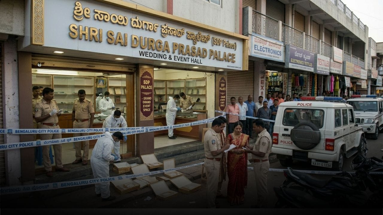 ಬೆಂಗಳೂರಿನ ಮದುವೆ ಮಂಟಪದಲ್ಲಿ 1 ಕೋಟಿ ಮೌಲ್ಯದ ಚಿನ್ನಾಭರಣ ಕಳವಾಗಿದೆ. ಅಳಿಯನ ಮದುವೆಗೆ ಅಮೆರಿಕದಿಂದ ಬಂದಿದ್ದ ಎನ್ಆರ್ಐ ವೈದ್ಯೆಗೆ ಸೇರಿದ್ದ 725 ಗ್ರಾಂ ಚಿನ್ನ ಲಾಕ್ ಮಾಡಿದ ಕೊಠಡಿಯಿಂದಲೇ ಕಳುವಾಗಿದೆ. ಕುಟುಂಬಸ್ಥರಿಗೆ ಆಪ್ತರ ಕೈವಾಡದ ಬಗ್ಗೆ ಪೊಲೀಸರು ಶಂಕೆ ವ್ಯಕ್ತಪಡಿಸಿದ್ದು, ತನಿಖೆ ಮುಂದುವರಿದಿದೆ. ಈ ಘಟನೆ ಮದುವೆ ಸಂಭ್ರಮದಲ್ಲಿರುವ ಕುಟುಂಬಕ್ಕೆ ದೊಡ್ಡ ಆಘಾತ ನೀಡಿದೆ.
