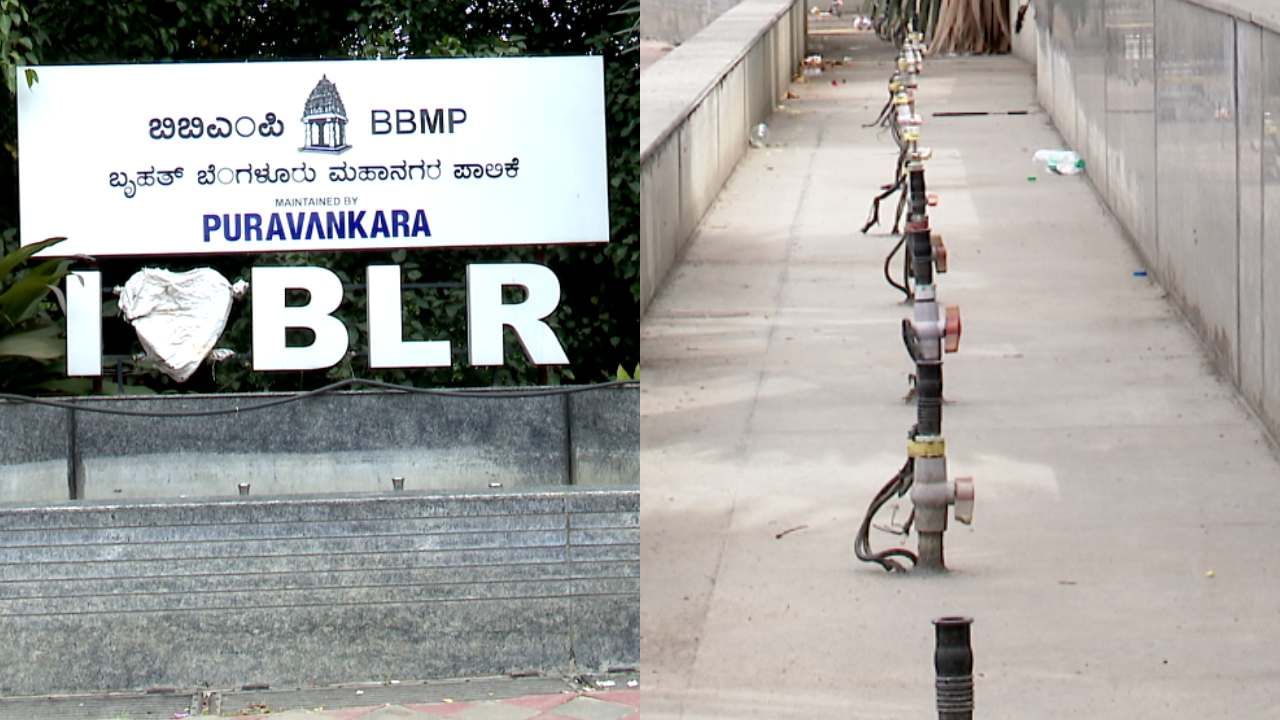 ಬೆಂಗಳೂರಿನ ಕೆಆರ್ ಸರ್ಕಲ್ನಲ್ಲಿ ಬಿಜೆಪಿ ಸರ್ಕಾರದ ಅವಧಿಯಲ್ಲಿ 3 ಕೋಟಿ ರೂ ವೆಚ್ಚದಲ್ಲಿ ನಿರ್ಮಿಸಲಾಗಿದ್ದ 'ಐ ಲವ್ ಬೆಂಗಳೂರು' ಕಾರಂಜಿ ಇದೀಗ ಹಾಳಾಗಿದೆ. ಕಳಪೆ ಕಾಮಗಾರಿ ಮತ್ತು ನಿರ್ವಹಣೆ ಮಾಡದಿರುವುದೇ ಇದಕ್ಕೆ ಕಾರಣವೆನ್ನಲಾಗುತ್ತಿದೆ. ಈ ಬಗ್ಗೆ ಪಾದಚಾರಿಗಳು ಕೂಡ ಅಸಮಾಧಾನ ವ್ಯಕ್ತಪಡಿಸುತ್ತಿದ್ದಾರೆ.