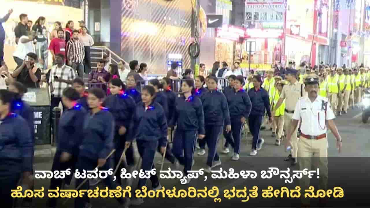 ಬೆಂಗಳೂರು, ಡಿಸೆಂಬರ್ 31: ಹೊಸ ವರ್ಷವನ್ನು ಸ್ವಾಗತಿಸಲು ಬೆಂಗಳೂರು (Bangalore) ಸಜ್ಜಾಗಿದ್ದು, ಯಾವುದೇ ಅಹಿತಕರ ಘಟನೆ ನಡೆಯದಂತೆ ನಗರದಾದ್ಯಂತ ಬಿಗಿ ಪೊಲೀಸ್ ಬಂದೋಬಸ್ತ್ ಏರ್ಪಡಿಸಲಾಗಿದೆ. ಎಂಜಿ ರಸ್ತೆ, ಬ್ರಿಗೇಡ್ ರಸ್ತೆ ಮತ್ತು ಚರ್ಚ್ ಸ್ಟ್ರೀಟ್ನಂತಹ ಪ್ರಮುಖ ಕೇಂದ್ರಗಳು ದೀಪಾಲಂಕಾರದಿಂದ ಜಗಮಗಿಸುತ್ತಿವೆ. ಈ ಪ್ರದೇಶಗಳು ಮತ್ತು ಕೋರಮಂಗಲ ಸೇರಿದಂತೆ ಹೆಚ್ಚು ಜನಸಂದಣಿ ನಿರೀಕ್ಷಿತ ಸ್ಥಳಗಳಲ್ಲಿ ಪೊಲೀಸರು ಅತ್ಯಂತ ಹೆಚ್ಚಿನ ನಿಗಾ ವಹಿಸಿದ್ದಾರೆ. ನಗರದಾದ್ಯಂತ ಸುಮಾರು 20,000ಕ್ಕೂ ಹೆಚ್ಚು ಪೊಲೀಸ್ ಸಿಬ್ಬಂದಿಯನ್ನು ಭದ್ರತೆಗಾಗಿ ನಿಯೋಜಿಸಲಾಗಿದೆ. ರಸ್ತೆಗಳ ಎರಡೂ ಬದಿಗಳಲ್ಲಿ ಬ್ಯಾರಿಕೇಡ್ಗಳನ್ನು ಅಳವಡಿಸಲಾಗಿದ್ದು, 6,000ಕ್ಕೂ ಹೆಚ್ಚು ಸಿಸಿಟಿವಿ ಕ್ಯಾಮರಾಗಳ ಮೂಲಕ ನಿರಂತರ ಕಣ್ಗಾವಲು ಇರಿಸಲಾಗಿದೆ.