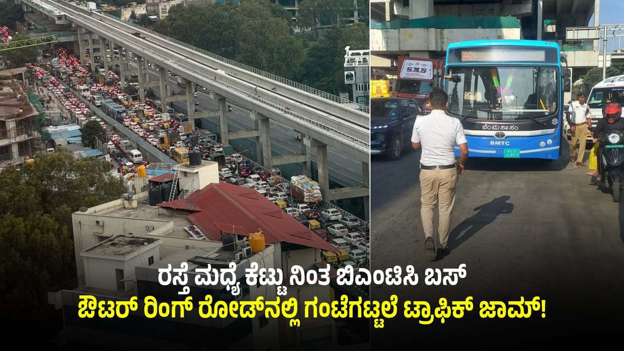 ಬೆಂಗಳೂರು: ಬಿಎಂಟಿಸಿ ಬಸ್ ಕೆಟ್ಟು ನಿಂತಿದ್ದಕ್ಕೆ ಇಡೀ ಔಟರ್ರಿಂಗ್ ರಸ್ತೆ ಫುಲ್ ಜಾಮ್!