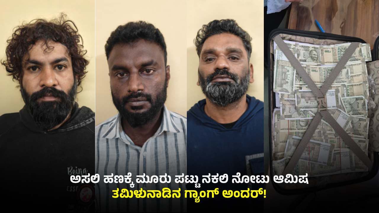 ಬೆಂಗಳೂರು, ಅಕ್ಟೋಬರ್ 19: ಅದು ತಮಿಳುನಾಡಿನ ಕಿಲಾಡಿ ಗ್ಯಾಂಗ್. ಜನರಿಗೆ ಮಂಕುಬೂದಿ ಎರಚೋದೆ ಅವರ ಕಾಯಕ. ಅಸಲಿ ನೋಟು ಕೊಟ್ಟರೇ ಅದಕ್ಕಿಂತ ಹೆಚ್ಚಿನ ನಕಲಿ ನೋಟು (Fake Notes) ನೀಡಿ ಮಾರಿಸುವದು ಕರಗತವಾಗಿತ್ತು. ರಾಜ್ಯ ಬಿಟ್ಟು ರಾಜ್ಯಕ್ಕೆ ಬಂದಿದ್ದ ಆ ಗ್ಯಾಂಗ್ ಬೆಂಗಳೂರಿನಲ್ಲಿ ಮೊದಲ ವಂಚನೆ ಪ್ರಯತ್ನದಲ್ಲೇ ಖಾಕಿ ಬಲೆಗೆ (Arrest) ಬಿದ್ದಿದೆ.