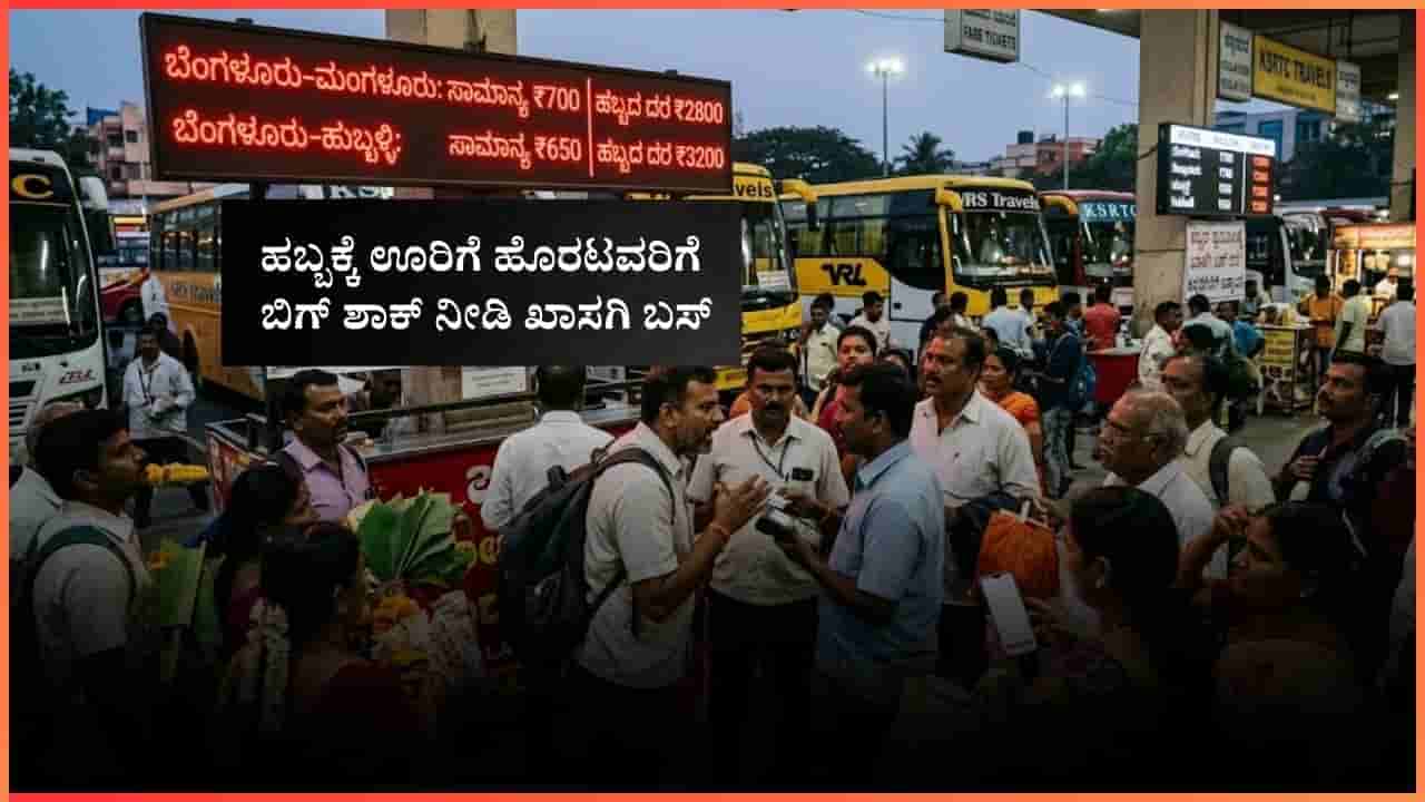 ಬೆಂಗಳೂರು, ಮಾ.17: ಸತತ ನಾಲ್ಕು ದಿನಗಳ ರಜೆ ಮತ್ತು ಹಬ್ಬದ ಹಿನ್ನೆಲೆಯಲ್ಲಿ ಬೆಂಗಳೂರಿನಿಂದ ತಮ್ಮೂರಿಗೆ ತೆರಳುವ ಪ್ರಯಾಣಿಕರಿಗೆ ಖಾಸಗಿ ಬಸ್ (Bengaluru private bus ) ಮಾಲೀಕರು ದರ ಏರಿಕೆಯ ಬಿಸಿ ಮುಟ್ಟಿಸಿದ್ದಾರೆ. ಯುಗಾದಿ ಮತ್ತು ರಂಜಾನ್ ಹಬ್ಬವನ್ನೇ ಬಂಡವಾಳ ಮಾಡಿಕೊಂಡಿರುವ ಖಾಸಗಿ ಸಾರಿಗೆ ಸಂಸ್ಥೆಗಳು, ಟಿಕೆಟ್ ದರವನ್ನು ಎರಡರಿಂದ ಮೂರು ಪಟ್ಟು ಹೆಚ್ಚಳ ಮಾಡಿವೆ.