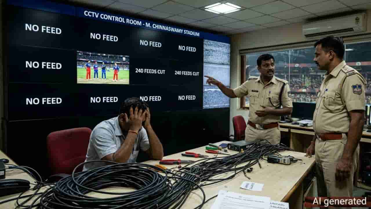 ಬೆಂಗಳೂರು, ಏಪ್ರಿಲ್ 27: ಆರ್ಸಿಬಿ (RCB) ಹಾಗೂ ಗುಜರಾತ್ ಟೈಟನ್ಸ್ (RCB vs GT) ನಡುವಿನ ಪಂದ್ಯದ ವೇಳೆ ಚಿನ್ನಸ್ವಾಮಿ ಕ್ರೀಡಾಂಗಣದಲ್ಲಿ (Chinnaswamy Stadium) 240ಕ್ಕೂ ಹೆಚ್ಚು ಸಿಸಿಟಿವಿ ಕ್ಯಾಮರಾಗಳ ಕೇಬಲ್ ಕಟ್ ಆಗಿರುವುದು ಪೊಲೀಸರಲ್ಲಿ ದೊಡ್ಡ ಆತಂಕ ಮೂಡಿಸಿತ್ತು. ಇದು ಯಾವುದೋ ವಿಧ್ವಂಸಕ ಕೃತ್ಯವಿರಬಹುದು ಎಂಬ ಅನುಮಾನದಲ್ಲಿ ತನಿಖೆ ಕೈಗೊಂಡಿದ್ದ ಕಬ್ಬನ್ ಪಾರ್ಕ್ ಪೊಲೀಸರಿಗೆ ಈಗ ತೀರಾ ವೈಯಕ್ತಿಕ ಮತ್ತು ವಿಚಿತ್ರ ಕಾರಣವೊಂದು ತಿಳಿದುಬಂದಿದೆ.