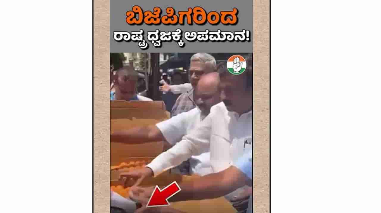 ಕಳೆದ ಗುರುವಾರ (ಮೇ.08) ರಂದು ಜಯನಗರ ಬಿಜೆಪಿ ಶಾಸಕ ರಾಮಮೂರ್ತಿ ಅವರು ತಮ್ಮ ಬೆಂಬಲಿಗರೊಂದಿಗೆ ಸಹಿ ಹಂಚ್ಚಿದ್ದರು. ಬಿಜೆಪಿ ಶಾಸಕ ರಾಮಮೂರ್ತಿ ಅವರ ಜೊತೆ ಎ. ಕೃಷ್ಣಪ್ಪ ಎಂಬುವರು ಕೂ ಸಿಹಿ ಹಂಚಿದ್ದರು. ಸಿಹಿ ಹಂಚಿದ ಬಳಿಕ ತಮ್ಮ ಕೈಯನ್ನು ಎ.ಕೃಷ್ಣಪ್ಪ ಅವರು ರಾಷ್ಟ್ರಧ್ವಜಕ್ಕೆ ಒರೆಸಿದ್ದಾರೆ. ಎ. ಕೃಷ್ಣಪ್ಪ ಅವರು ರಾಷ್ಟ್ರಧ್ವಜಕ್ಕೆ ಕೈ ಒರೆಸಿರುವ ವಿಡಿಯೋ ಸಾಮಾಜಿಕ ಜಾಲತಾಣದಲ್ಲಿ ವೈರಲ್ ಆಗಿದೆ.