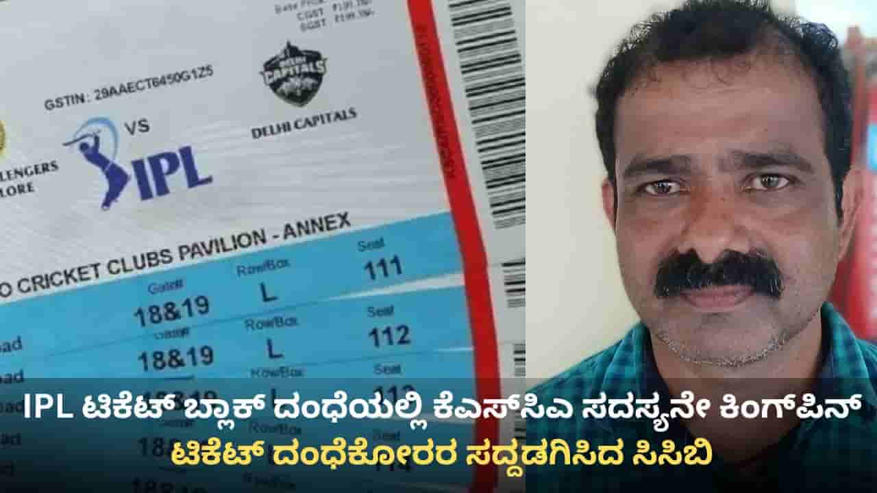 ಸಿಸಿಬಿ ಡಿಸಿಪಿ ಹರಿಬಾಬು ನೇತೃತ್ವದಲ್ಲಿ ನಡೆದ ಕಾರ್ಯಾಚರಣೆಯಲ್ಲಿ ಲಕ್ಷ್ಮೀ ಕ್ಯಾಟರ್ಸ್ ಹೋಟೆಲ್ನ ಕ್ಯಾಪ್ಟನ್ ಚಂದ್ರಶೇಖರ್ ಎಂಬಾತ ಸಿಕ್ಕಿಬಿದ್ದಿದ್ದಾನೆ. 15 ಸಾವಿರ ರೂಪಾಯಿ ಬೆಲೆಯ ಟಿಕೆಟ್ಗಳನ್ನು ಈತ ಬರೋಬ್ಬರಿ 19 ಸಾವಿರ ರೂಪಾಯಿಗೆ ಮಾರಾಟ ಮಾಡುತ್ತಿದ್ದಾಗ ಪೊಲೀಸರು ದಾಳಿ ನಡೆಸಿ ಸೆರೆಹಿಡಿದಿದ್ದಾರೆ. ವಿಚಾರಣೆ ವೇಳೆ ಈತ ನೀಡಿದ ಮಾಹಿತಿ ಆಘಾತಕಾರಿಯಾಗಿದ್ದು, ಕೆಎಸ್ಸಿಎ ಸದಸ್ಯ ಗಣೇಶ್ ಹರಿಕೇಶ್ ಎಂಬುವವರ ಹೆಸರನ್ನು ಬಾಯ್ಬಿಟ್ಟಿದ್ದಾನೆ.