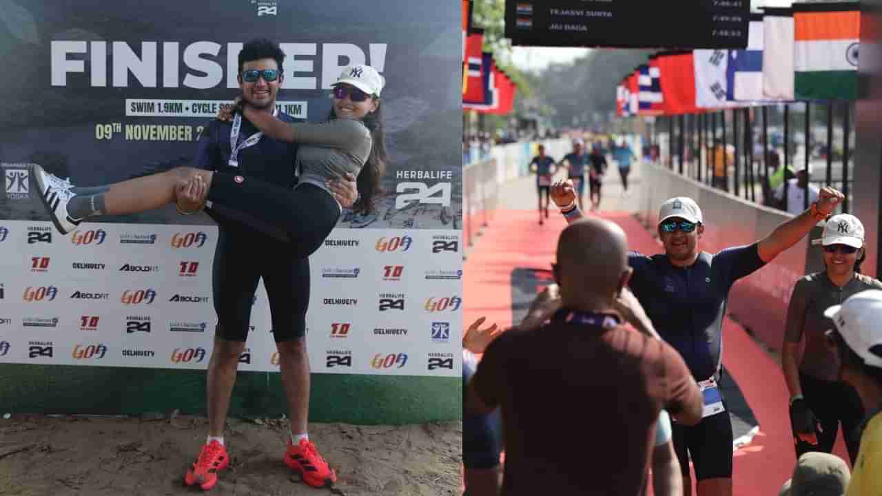ಬೆಂಗಳೂರು, ನವೆಂಬರ್ 11: ಬೆಂಗಳೂರು ದಕ್ಷಿಣ ಲೋಕಸಭಾ ಕ್ಷೇತ್ರದ ಸಂಸದ ತೇಜಸ್ವಿ ಸೂರ್ಯ (Tejasvi Surya) ಸತತ 2ನೇ ವರ್ಷವೂ ಗೋವಾದಲ್ಲಿ ನಡೆದ ಐರನ್ಮ್ಯಾನ್ 70.3 ಓಟವನ್ನು ಯಶಸ್ವಿಯಾಗಿ ಪೂರ್ಣಗೊಳಿಸಿರುವ ಬಗ್ಗೆ ಅವರ ಪತ್ನಿ ಶಿವಶ್ರೀ ಸ್ಕಂದಪ್ರಸಾದ್ ಪತಿಯನ್ನ ಹಾಡಿ ಹೊಗಳಿದ್ದಾರೆ. ಈ ಬಗ್ಗೆ ಸೋಶಿಯಲ್ ಮೀಡಿಯಾದಲ್ಲಿ ಪೋಸ್ಟ್ ಮಾಡಿರುವ ಅವರು, ಎರಡನೇ ಬಾರಿ ಐರನ್ಮ್ಯಾನ್ 70.3 ಯಶಸ್ವಿಯಾಗಿ ಪೂರ್ಣಗೊಳಿಸಿದಕ್ಕೆ ‘ಮ್ಯಾನ್ ಆಫ್ ಸ್ಟೀಲ್’ ನನ್ನ ಪತಿ ತೇಜಸ್ವಿ ಸೂರ್ಯ ಅವರಿಗೆ ಅಭಿನಂದನೆಗಳು. ಹಿಂದಿನ ಬಾರಿ ಹೋಲಿಸಿದರೆ 40 ನಿಮಿಷ ಕಡಿಮೆ ಸಮಯದಲ್ಲಿ ಗುರಿಯನ್ನ ಪೂರ್ಣಗೊಳಿಸಿದ್ದೀರಿ ಎಂದು ಸಂತಸ ವ್ಯಕ್ತಪಡಿಸಿದ್ದಾರೆ.