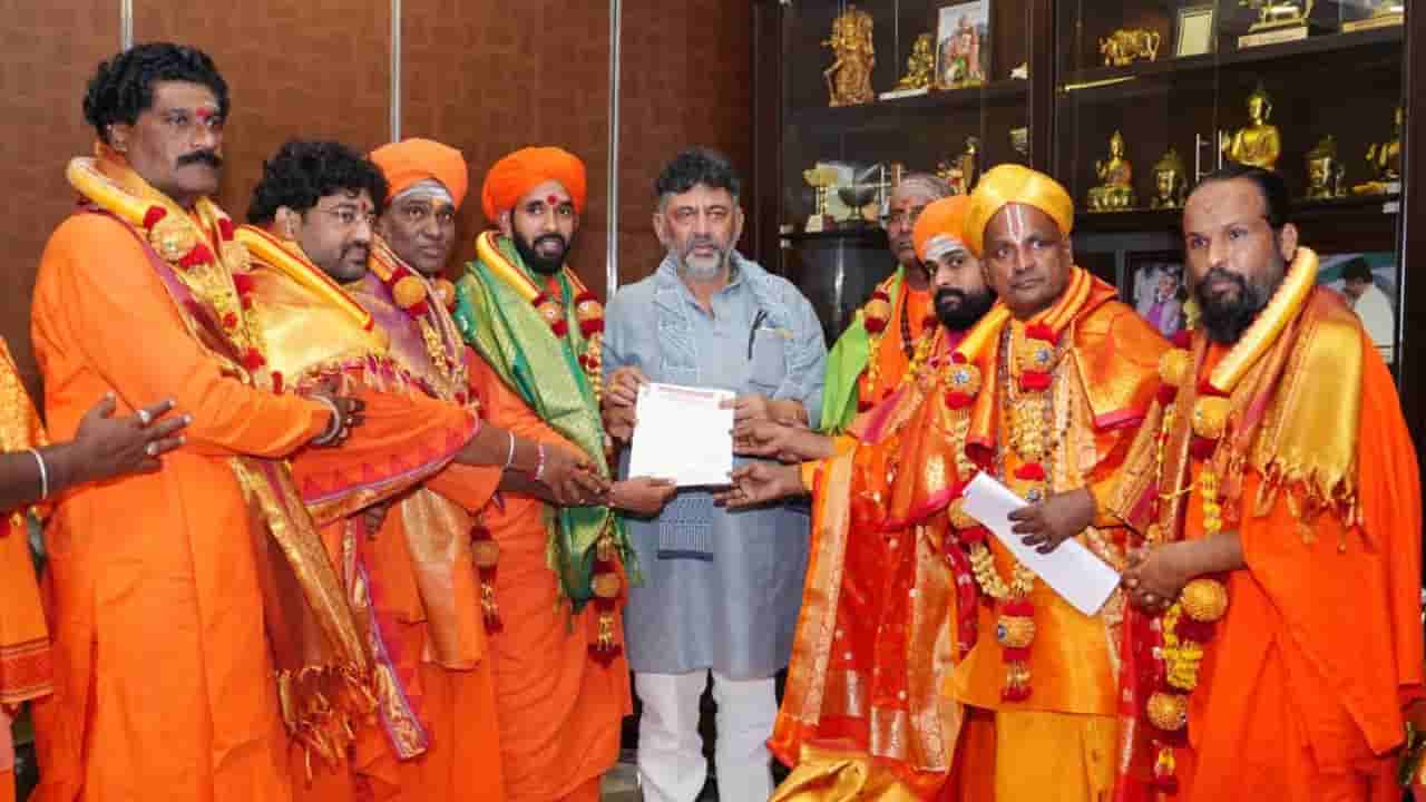 ಬೆಂಗಳೂರು, ಡಿಸೆಂಬರ್ 05: ರಾಜ್ಯ ರಾಜಕಾರಣದಲ್ಲಿ ಸಿಎಂ ಕುರ್ಚಿ ಕಾದಾಟ ಕೊಂಚ ತಣ್ಣಗಾದಂತೆ ಕಂಡರೂ ಒಳಗೊಳಗೆ ಹೊಗೆಯಾಡುತ್ತಲೇ ಇದೆ. ಇದಕ್ಕೆ ಪೂರಕವೆಂಬಂತೆ ಅತಿ ಹಿಂದುಳಿದ ವರ್ಗಗಳ 11 ಸ್ವಾಮೀಜಿಗಳ ಒಕ್ಕೂಟ ಡಿಸಿಎಂ ಡಿ.ಕೆ. ಶಿವಕುಮಾರ್ ಅವರನ್ನು ಭೇಟಿ ಮಾಡಿದೆ. ಪ್ರಣವಾನಂದ ಸ್ವಾಮೀಜಿ ನೇತೃತ್ವದ ತಂಡ ಡಿಕೆಶಿ ಅವರ ಸದಾಶಿವನಗರದಲ್ಲಿರುವ ನಿವಾಸಕ್ಕೆ ಭೆಟಿ ನೀಡಿದ್ದು, ಅವರು ಸಿಎಂ ಆಗಬೇಕೆಂದು ಬೆಂಬಲ ಸೂಚಿಸಿದೆ. ಜೊತೆಗೆ ನಿಮ್ಮ ನೇತೃತ್ವದಲ್ಲಿ ಅತಿ ಹಿಂದುಳಿದ ವರ್ಗಗಳ ಸಮಾವೇಶ ಬೆಂಗಳೂರಲ್ಲಿ ನಡೆಯಬೇಕು ಎಂದು ಡಿ.ಕೆ. ಶಿವಕುಮಾರ್ ಅವರನ್ನು ಒತ್ತಾಯಿಸಿದೆ.
