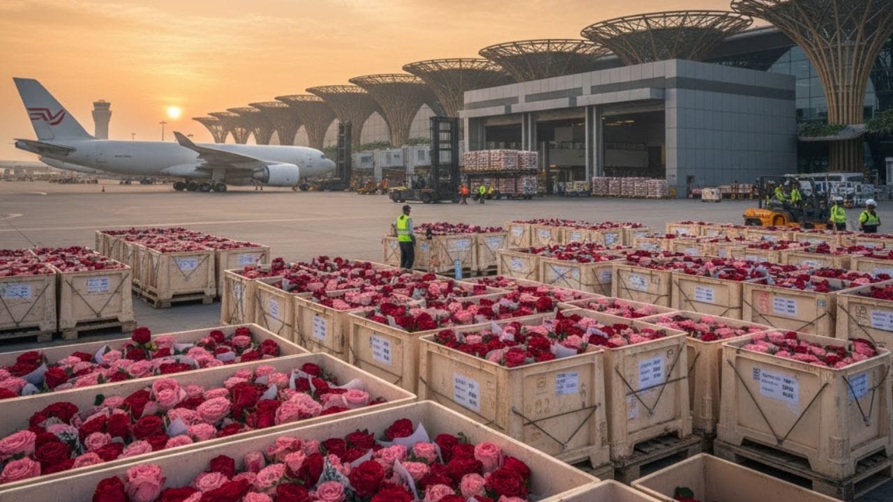 ಪ್ರೇಮಿಗಳ ದಿನದಂದು ಬೆಂಗಳೂರಿನ ಕೆಂಪೇಗೌಡ ವಿಮಾನ ನಿಲ್ದಾಣ (KIA) 60 ದಶಲಕ್ಷಕ್ಕೂ ಹೆಚ್ಚು ಗುಲಾಬಿ ಹೂವುಗಳನ್ನು ಜಾಗತಿಕವಾಗಿ ರಫ್ತು ಮಾಡಿ ದಾಖಲೆ ನಿರ್ಮಿಸಿದೆ. ಕಳೆದ ವರ್ಷಕ್ಕೆ ಹೋಲಿಸಿದರೆ ರಫ್ತು ಶೇ. 38ರಷ್ಟು ಹೆಚ್ಚಾಗಿದೆ. ಕೆಐಎ ಅತ್ಯಾಧುನಿಕ ಕೋಲ್ಡ್ ಚೈನ್ ಮೂಲಸೌಕರ್ಯದಿಂದ ಹೂವುಗಳ ಗುಣಮಟ್ಟ ಕಾಪಾಡಿ, ಸತತ ಐದನೇ ವರ್ಷವೂ ದೇಶದ ಅಗ್ರ ರಫ್ತು ವಿಮಾನ ನಿಲ್ದಾಣವಾಗಿ ಹೊರಹೊಮ್ಮಿದೆ.