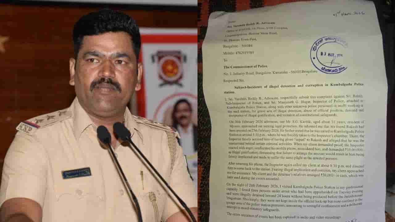 ಬೆಂಗಳೂರು, ಮಾರ್ಚ್ 05: ಲಂಚ ಪಡೆದ ಆರೋಪದಡಿ ಕುಂಬಳಗೋಡು ಪೊಲೀಸ್ ಠಾಣೆಯ ಇನ್ಸ್ಪೆಕ್ಟರ್ ವಿರುದ್ಧ ಗಂಭೀರ ದೂರು ದಾಖಲಾಗಿದೆ. ಪಿಐ ಮಂಜುನಾಥ ಹೂಗಾರ್ 10 ಲಕ್ಷ ರೂ ಲಂಚಕ್ಕೆ ಬೇಡಿಕೆ ಇಟ್ಟು, ನಂತರ 30 ಸಾವಿರ ರೂ. ಪಡೆದು ಮೂವರನ್ನು ಬಿಡಿಸಿದ ಆರೋಪ ಕೇಳಿಬಂದಿದೆ. ಈ ಕುರಿತು ವಕೀಲ ವರ್ಷಿತ್ ರೆಡ್ಡಿ ಅವರು ಬೆಂಗಳೂರು ಪೊಲೀಸ್ ಆಯುಕ್ತ ಸೀಮಂತ್ ಕುಮಾರ್ ಸಿಂಗ್ಗೆ ದೂರು ನೀಡಿದ್ದಾರೆ.