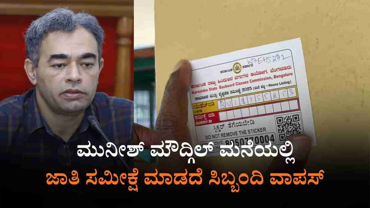 ಗ್ರೇಟರ್ ಬೆಂಗಳೂರು ಪ್ರಾಧಿಕಾರದ ಕಂದಾಯ ವಿಭಾಗದ ವಿಶೇಷ ಆಯುಕ್ತ ಮುನೀಶ್ ಮೌದ್ಗಿಲ್ ಅವರ ಮನೆಗೆ ಸಮೀಕ್ಷೆಗೆಂದು ತೆರಳಿದ್ದ ಸಿಬ್ಬಂದಿ ಗಣತಿ ಮಾಡದೆ ಹಿಂದಿರುಗಿದ್ದಾರೆ. ಮನೆಯ ಕಾಲಿಂಗ್ ಬೆಲ್ ಮಾಡಿದಾಗ ಯಾರೂ ಮನೆಯ ಬಾಗಿಲು ತೆರೆಯದ ಕಾರಣ ಸಂದೇಶ ಕಳುಹಿಸಿದ್ದೇವೆ. ಪ್ರತಿಕ್ರಿಯೆ ನೀಡಿಲ್ಲ ಅಂತಾ ಅಪ್ಡೇಟ್ ಮಾಡಿ ಎಂದು ಮುನೀಶ್ ಮೌದ್ಗಿಲ್ ತಿಳಿಸಿದ್ದಾರೆ. ಒಟ್ಟು ಮೂರು ಬಾರಿ ಮನಿಶ್ ಮೌದ್ಗಿಲ್ ಮನೆಗೆ ಸಮೀಕ್ಷೆಗೆಂದು ತೆರಳಿದ್ದರೂ ಮಾಹಿತಿ ಸಂಗ್ರಹಿಸಲು ಸಾಧ್ಯವಾಗಿಲ್ಲ ಎಂದು ಅಧಿಕಾರಿಗಳಿಗೆ ಸಿಬ್ಬಂದಿ ತಿಳಿಸಿದ್ದಾರೆ.