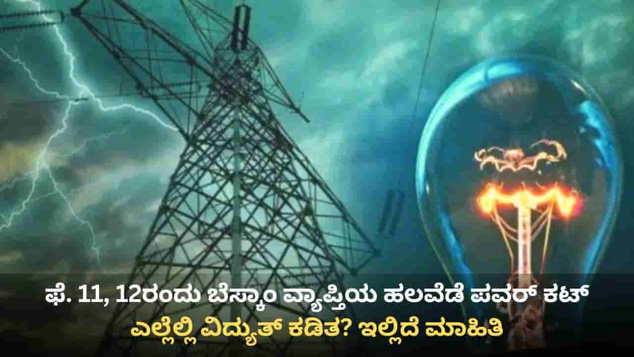 ಬೆಂಗಳೂರು, ಫೆಬ್ರವರಿ 10: ಕೆಪಿಟಿಸಿಲ್ ತುರ್ತು ನಿರ್ವಹಣೆ ಮತ್ತು ಇತರ ಕಾಮಗಾರಿಗಳನ್ನು ಹಮ್ಮಿಕೊಂಡಿರುವುದರಿಂದ ಬೆಂಗಳೂರು ವಿದ್ಯುತ್ ಸರಬರಾಜು ಕಂಪನಿ ನಿಯಮಿತ (BESCOM) ವ್ಯಾಪ್ತಿಯ ವಿವಿಧ ಪ್ರದೇಶಗಳಲ್ಲಿ ಫೆಬ್ರವರಿ 11 ಹಾಗೂ 12 ರಂದು ಪವರ್ ಕಟ್ (Power Cut) ಇರಲಿದೆ. ಈ ಬಗ್ಗೆ ಪ್ರಕಟಣೆ ಮೂಲಕ ಬೆಸ್ಕಾಂ ಮಾಹಿತಿ ನೀಡಿದೆ.