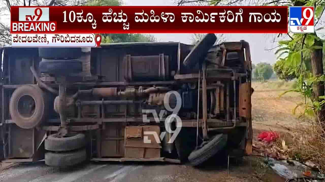 ಗೌರಿಬಿದನೂರು ತಾಲೂಕಿನ ವೇದಲ ವೇಣಿ ಬಳಿ ಗಾರ್ಮೆಂಟ್ಸ್ ಕಾರ್ಮಿಕರಿದ್ದ ಮಿನಿಬಸ್ ಪಲ್ಟಿಯಾಗಿದೆ. ಚಾಲಕನ ಎಡವಟ್ಟಿನಿಂದ ಸಂಭವಿಸಿದ ಈ ಅಪಘಾತದಲ್ಲಿ ಹತ್ತಕ್ಕೂ ಹೆಚ್ಚು ಮಹಿಳಾ ಕಾರ್ಮಿಕರು ಗಾಯಗೊಂಡಿದ್ದು, ಎಂಟು ಮಂದಿಗೆ ತೀವ್ರ ಸ್ವರೂಪದ ಗಾಯಗಳಾಗಿವೆ. ಗಾಯಾಳುಗಳಿಗೆ ಪ್ರಾಥಮಿಕ ಚಿಕಿತ್ಸೆ ನೀಡಿ, ಗಂಭೀರ ಗಾಯಗೊಂಡವರನ್ನು ಬೆಂಗಳೂರಿಗೆ ರವಾನಿಸಲಾಗಿದೆ.