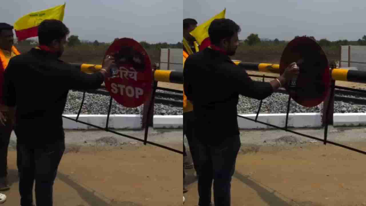 ಸಾಮಾಜಿಕ ಮಾಧ್ಯಮ ಬಳಕೆದಾರ ಆದಿತ್ಯ ಸಮರ್ಥ್ ಎಂಬವರು ಹಂಚಿಕೊಂಡಿರುವ ವೀಡಿಯೊದಲ್ಲಿ, ವ್ಯಕ್ತಿಗಳ ಗುಂಪೊಂದು ರೈಲ್ವೆ ಗೇಟ್ ಫಲಕದ ಬಳಿಗೆ ಬಂದು ಮಸಿ ಬಳಿಯುತ್ತಿರುವುದನ್ನು ತೋರಿಸಲಾಗಿದೆ. ಸ್ಥಳೀಯ ಭಾಷೆಯನ್ನು ಕಡೆಗಣಿಸಲಾಗುತ್ತಿದೆ ಎಂದು ಪ್ರತಿಪಾದಿಸುತ್ತಾ, ಈ ಪ್ರದೇಶದ ಎಲ್ಲಾ ರೈಲ್ವೆ ಫಲಕಗಳಲ್ಲಿ ಕನ್ನಡವನ್ನು ತಕ್ಷಣ ಸೇರಿಸಬೇಕೆಂದು ಪ್ರತಿಭಟನಾಕಾರರು ಒತ್ತಾಯಿಸಿದ್ದಾರೆ.