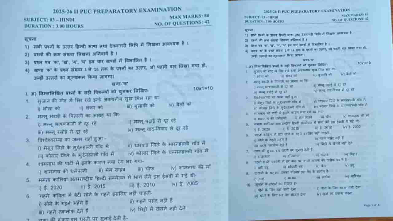 ಬೆಂಗಳೂರು, ಜನವರಿ 12: ದ್ವೀತಿಯ ಪಿಯುಸಿ (2nd PUC) ವಾರ್ಷಿಕ ಪರೀಕ್ಷೆಗೆ ದಿನಗಣನೆ ಶುರುವಾಗಿದೆ. ಹೀಗಾಗಿ ಕರ್ನಾಟಕದಾದ್ಯಂತ ಪ್ರಿಪರೇಟರಿ ಎಕ್ಸಾಂ ನಡೆಸಲಾಗುತ್ತಿದೆ. ಪರೀಕ್ಷೆ ಆರಂಭ ಬೆನ್ನಲ್ಲೇ ಪ್ರಶ್ನೆ ಪತ್ರಿಕೆ ಲೀಕ್ ಹಾವಳಿ ಕೂಡ ಜೋರಾಗಿದೆ. ಶಿಕ್ಷಣ ಇಲಾಖೆ ವೈಫಲ್ಯವನ್ನೇ ಖದೀಮರು ಬಂಡವಾಳ ಮಾಡಿಕೊಂಡಿದ್ದಾರೆ. ಕೆಎಸ್ಇಎಬಿ (KSEAB) ತಯಾರು ಮಾಡಿದ ಪ್ರಶ್ನೆ ಪತ್ರಿಕೆ ರೀತಿಯೇ ಹೋಲುವಂತೆ ಪ್ರಶ್ನೆಪತ್ರಿಕೆ ತಯಾರಿಸಿದ್ದಾರೆ. ಆ ಮೂಲಕ ನಕಲಿ ಪ್ರಶ್ನೆಪತ್ರಿಕೆ ಹರಿಬಿಟ್ಟು ಇದೇ ಒರಿಜಿನಲ್ ಅಂತ ಬಿಂಬಿಸಿದ್ದಾರೆ. ಸದ್ಯ ಈ ಬಗ್ಗೆ ಬೆಂಗಳೂರು ನಾರ್ತ್ ಸೈಬರ್ ಕ್ರೈಂ ಪೊಲೀಸ್ ಠಾಣೆಯಲ್ಲಿ ದೂರು ದಾಖಲಾಗಿದೆ.