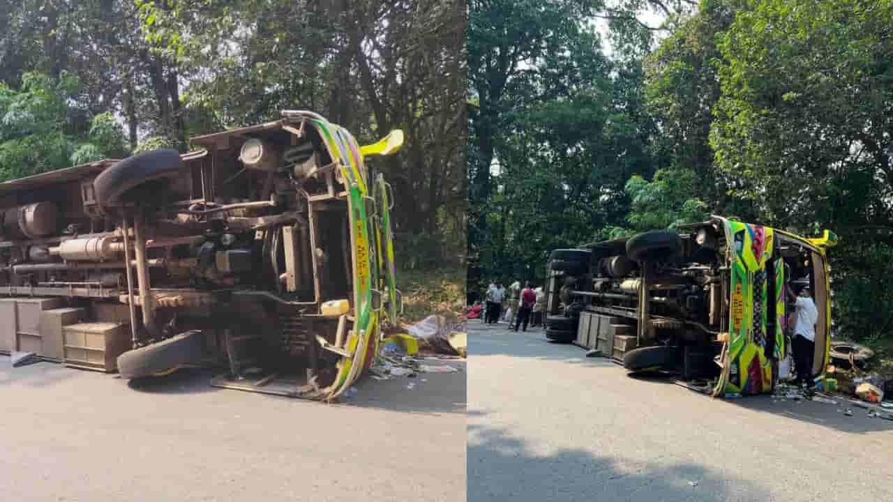 ಬೆಳ್ತಂಗಡಿ, ಏ.26: ದಕ್ಷಿಣ ಕನ್ನಡ ಜಿಲ್ಲೆಯ ಚಾರ್ಮಾಡಿ ಘಾಟಿಯ ಅಪಾಯಕಾರಿ ತಿರುವಿನಲ್ಲಿ ಖಾಸಗಿ ಬಸ್ಸು ನಿಯಂತ್ರಣ ತಪ್ಪಿ ಪಲ್ಟಿಯಾದ ಘಟನೆ ನಡೆದಿದೆ. ಧರ್ಮಸ್ಥಳದಲ್ಲಿ ಮದುವೆ ಮುಗಿಸಿಕೊಂಡು ಮೂಡಿಗೆರೆಯತ್ತ ಸಾಗುತ್ತಿದ್ದ ಬಸ್ ಅಪಘಾತಕ್ಕೀಡಾಗಿದ್ದು, ಬಸ್ಸಿನಲ್ಲಿದ್ದ 25 ಪ್ರಯಾಣಿಕರು ಗಾಯಗೊಂಡಿದ್ದಾರೆ. ಧರ್ಮಸ್ಥಳದಲ್ಲಿ ನಡೆದ ವಿವಾಹ ಕಾರ್ಯಕ್ರಮದಲ್ಲಿ ಭಾಗವಹಿಸಿ, ಅಲ್ಲಿಂದ ಪ್ರಯಾಣಿಕರನ್ನು ಹೊತ್ತು ಮೂಡಿಗೆರೆಯತ್ತ ಖಾಸಗಿ ಬಸ್ಸು ಹೊರಟಿತ್ತು. ಚಾರ್ಮಾಡಿ ಘಾಟಿಯ ನಾಲ್ಕನೇ ತಿರುವಿನಲ್ಲಿ ಚಾಲಕನ ನಿಯಂತ್ರಣ ತಪ್ಪಿದ ಬಸ್ಸು ರಸ್ತೆಯಲ್ಲೇ ಪಲ್ಟಿಯಾಗಿದೆ. ಘಾಟಿ ಪ್ರದೇಶವಾದ್ದರಿಂದ ಬಸ್ ಪ್ರಪಾತಕ್ಕೆ ಬೀಳುವ ಅಪಾಯವಿತ್ತಾದರೂ, ರಸ್ತೆಯಲ್ಲೇ ಪಲ್ಟಿಯಾಗಿರುವುದರಿಂದ ಭೀಕರ ದುರಂತವೊಂದು ಕೂದಲೆಳೆ ಅಂತರದಲ್ಲಿ ತಪ್ಪಿದಂತಾಗಿದೆ.