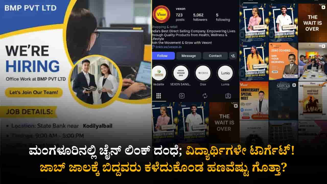 ಮಂಗಳೂರು, ಫೆಬ್ರವರಿ 27: ನಗರದಲ್ಲಿ (Mangalore) ಉದ್ಯೋಗಾವಕಾಶದ ಆಮಿಷವೊಡ್ಡಿ ನೂರಾರು ವಿದ್ಯಾರ್ಥಿಗಳನ್ನು ವಂಚಿಸಿರುವ ಪ್ರಕರಣ ಬೆಳಕಿಗೆ ಬಂದಿದೆ. ಮಹಾರಾಷ್ಟ್ರ ಮೂಲದ ‘ವೆಕ್ಸಾನ್’ ಎಂಬ ಕಂಪನಿ, BMP ಪ್ರೈವೇಟ್ ಲಿಮಿಟೆಡ್ ಎಂಬ ಹೆಸರಿನಲ್ಲಿ ಸಾಮಾಜಿಕ ಜಾಲತಾಣಗಳಲ್ಲಿ ವೆಬ್ ಡಿಸೈನರ್ ಹಾಗೂ ವೆಬ್ ಡೆವಲಪರ್ ಹುದ್ದೆಗಳಿಗಾಗಿ ಜಾಹೀರಾತು ನೀಡುತ್ತಿದ್ದುದಾಗಿ ತಿಳಿದುಬಂದಿದೆ. ಕಂಪನಿಯ ಮೋಸದ ಜಾಲಕ್ಕೆ ಬಿದ್ದ ವಿದ್ಯಾರ್ಥಿಗಳು ಸಾವಿರಾರು ರೂ. ಕಳೆದುಕೊಂಡಿದ್ದು, ಕದ್ರಿ ಪೊಲೀಸ್ ಠಾಣೆಯಲ್ಲಿ ದೂರು ದಾಖಲಾಗಿದೆ. ಈ ವೇಳೆ ಟಿವಿ9 ಕ್ಯಾಮರಾ ಕಂಡ ಕಂಪನಿಯ ಸಿಬ್ಬಂದಿ ದಿಕ್ಕಾಪಾಲಾಗಿ ಓಡಿದ್ದಾರೆ.