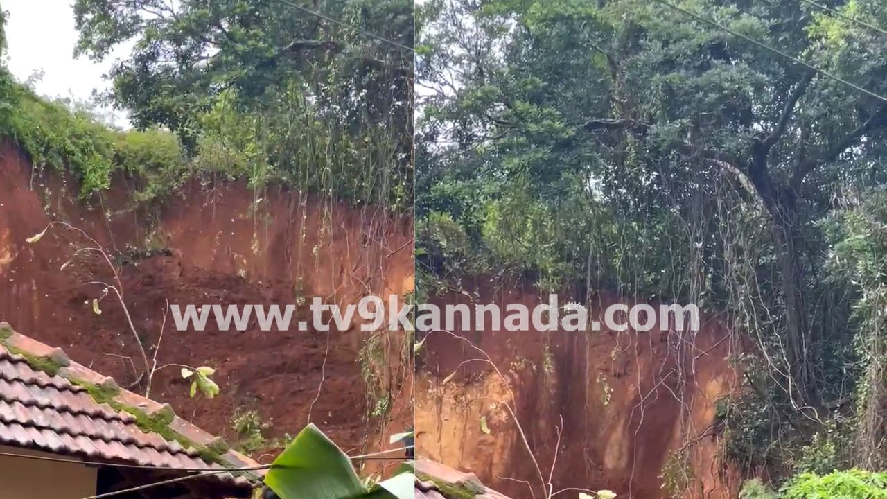 ಮಂಗಳೂರು, ಜೂನ್ 17: ಮುಂಗಾರು ಮಹಾ ಮಳೆಗೆ (Mangaluru Rains) ಮಂಗಳೂರು ಅಕ್ಷರಶಃ ತತ್ತರಿಸಿಹೋಗಿದೆ. ಮಂಗಳೂರು ನಗರ ಮಾತ್ರವಲ್ಲದೆ ದಕ್ಷಿಣ ಕನ್ನಡ ಜಿಲ್ಲೆಯ ಹಲವೆಡೆ ಭೂಕುಸಿತ (Landslide) ಸಂಭವಿಸಿ ಮನೆಗಳಿಗೆ ಹಾನಿಯಾಗಿದೆ. ಮಂಗಳೂರು ಸಮೀಪದ ಕಣ್ಣೂರಿನ (Kannur) ದಯಂಬು ಎಂಬಲ್ಲಿ ಗುಡ್ಡ ಕುಸಿತದಲ್ಲಿ ಕುಟುಂಬವೊಂದು ಕೂದಲೆಲೆ ಅಂತರದಲ್ಲಿ ಪಾರಾಗಿದೆ. ಗುಡ್ಡದ ಕೆಳಭಾಗದಲ್ಲೇ ಇದ್ದ ಮನೆಯಲ್ಲಿ ವಾಸವಿದ್ದ ಕುಟುಂಬದವರು, ಗುಡ್ಡ ಕುಸಿತದ ಸದ್ದು ಕೇಳುತ್ತಿದ್ದಂತೆಯೇ ಓಡಿಹೋಗಿ ಬಚಾವಾಗಿದ್ದಾರೆ.