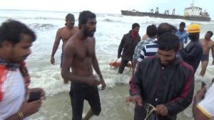 ಅದೃಷ್ಟವಶಾತ್ ಸಮುದ್ರದಲ್ಲಿ ಸಿಲುಕಿಕೊಂಡಿದ್ದಾತ ತನ್ನನ್ನು ರಕ್ಷಿಸುವಂತೆ ಅಂಗಲಾಚುತ್ತಿದ್ದ. ಅಲ್ಲಿಯೇ ಇದ್ದ ಕರಾವಳಿ ರಕ್ಷಣಾ ಪಡೆ ಕೂಡಾ ವಿಪರೀತ ಅಲೆಗಳಿದ್ದುದರಿಂದ ಈ ಯುವಕನನ್ನು ರಕ್ಷಿಸಲು ನಿರಾಕರಿಸಿದೆ.