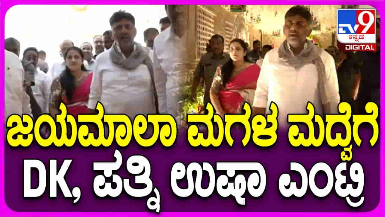 ಜಯಮಾಲಾ ಮಗಳು ಸೌಂದರ್ಯ ಮದುವೆಗೆ ಪತ್ನಿಯೊಂದಿಗೆ ಆಗಮಿಸಿದ ಡಿಸಿಎಂ ಡಿಕೆ ಶಿವಕುಮಾರ್