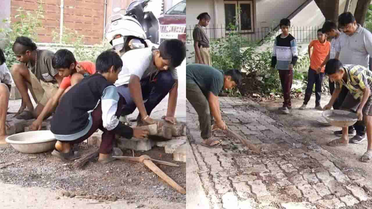 ಅರುಣ್ ಕಾಲೋನಿಯಲ್ಲಿ ರಸ್ತೆ ಕಾಮಗಾರಿಯನ್ನು ಗುತ್ತಿಗೆದಾರ ಸರಿಯಾಗಿ ನಿರ್ವಹಿಸಿದೇ ಬಿಟ್ಟು ಹೋಗಿದ್ದ. ರಸ್ತೆಗೆ ಹಾಕಿದ್ದ ಪೇವರ್ಗಳು ಕಿತ್ತುಹೋಗಿದ್ದವು. ಹೀಗಾಗಿ ಈ ರಸ್ತೆಯಲ್ಲಿ ಓಡಾಡುತ್ತಿದ್ದ ಅನೇಕ ವಾಹನ ಸವಾರರು ಬಿದ್ದು ಗಾಯಗೊಂಡಿದ್ದರು. ಈ ಬಗ್ಗೆ ಪಾಲಿಕೆ ಅಧಿಕಾರಿಗಳಿಗೆ, ಜನಪ್ರತಿನಿಧಿಗಳಿಗೆ ಸ್ಥಳೀಯರು ಅನೇಕ ಬಾರಿ ಮಾಹಿತಿ ನೀಡಿದ್ದರು. ಆದರೆ ಯಾರು ಕೂಡ ದುರಸ್ಥಿತಿಗೆ ಮುಂದಾಗಿರಲಿಲ್ಲ. ಹಾಗಾಗಿ ಅಧಿಕಾರಿಗಳು ಮತ್ತು ಜನಪ್ರತಿನಿಧಿಗಳು ಮಾಡಬೇಕಿದ್ದ ಕೆಲಸವನ್ನು ಈ ಬಾಲ ಸಮಾಜ ಸೇವಕರಾಗಿರುವ ಶಾಲಾ ಮಕ್ಕಳು ಮಾಡಿ ಮುಗಿಸಿದ್ದಾರೆ.