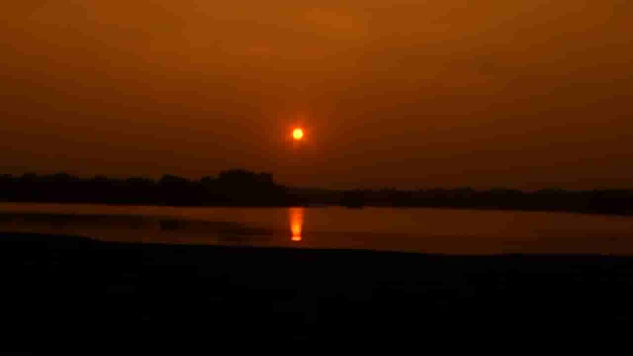 ಸಂಜೆ ಹೊತ್ತಿಗೆ ಬೆಟ್ಟ-ಗುಡ್ಡಗಳ ಮರೆಯಲ್ಲಿ ನಿಧಾನವಾಗಿ ಇಳಿಯುವ ಸೂರ್ಯ, ತನ್ನೆಲ್ಲಾ ಹಳೆಯ ನೆನಪುಗಳನ್ನ ಅಳಿಸಿ ಹಾಕಿ, ಹೊಸ ವರ್ಷಕ್ಕೆ ಹೊಸ ಬದುಕು ಹಾಗೂ ಭರವಸೆಯತ್ತ ಸಾಗುತ್ತಿರುವಂತೆ ಭಾಸವಾಗುತ್ತೆ. ನಿಧಾನವಾಗಿ ನೀರಿನಲ್ಲಿ ಇಳಿಯುವಂತೆ ಕಾಣುವ ಸೂರ್ಯ, ರಕ್ತದಲ್ಲಿ ಮಿಂದೆದ್ದವನಂತೆ ಕಾಣುತ್ತಾನೆ. ತನ್ನ ಸುತ್ತಮುತ್ತಲಿನ ಪರಿಸರಕ್ಕೂ ಅದನ್ನೇ ಹೊದಿಸುತ್ತಾನೆ. ಕ್ಷಣ ಉರುಳಿದಂತೆ ಚಿನ್ನದ ಬಣ್ಣಕ್ಕೆ ತಿರುಗುತ್ತಾ, ಕೆರೆಯ ಒಡಲನ್ನು ಚಿನ್ನದ ನೀರಿನಿಂದ ತುಂಬುತ್ತಾನೆ. ಅರೆಮಲೆನಾಡು ಜಿಲ್ಲೆಗಳಲ್ಲಿ ಜೂನ್ ಆರಂಭದಿಂದ ಡಿಸೆಂಬರ್ ಕೊನೆಯವರೆಗೆ ಸೂರ್ಯನ ಪ್ರಖರತೆ ಕಡಿಮೆ. ಮಳೆಗಾಲದಲ್ಲಿ ಸೂರ್ಯ ಮೋಡದ ಮರೆಯಲ್ಲಿ ಅವಿತುಕೊಂಡರೆ, ಚಳಿಗಾಲದಲ್ಲಿ ಮಂಜಿನಿಂದ ಹೊರ ಬಾರದೇ ಮರೆಯಾಗಿರುತ್ತಾನೆ. ಆದರೆ ಡಿಸೆಂಬರ್ ಮುಗಿಯುತ್ತಾ ಬರುತ್ತೋ ಆಗ ಮೋಡ-ಮಂಜಿನಿಂದ ಪ್ರಕೃತಿಯಷ್ಟೇ ಅಲ್ಲ, ಸೂರ್ಯನೂ ಮುಕ್ತಿ ಪಡೆದು, ತನ್ನ ಅಸ್ತಿತ್ವವನ್ನ ತೋರಿಸುತ್ತಾನೆ. ಈ ವೇಳೆಯಲ್ಲಿ ಕೆರೆಯ ನೀರಿನೊಂದಿಗೆ ಈತನ ಚೆಲ್ಲಾಟವನ್ನ ನೋಡಲಿಕ್ಕೆ ಎರಡು ಕಣ್ಣು ಸಾಲದು ಎಂದು ಸ್ಥಳೀಯರೊಬ್ಬರು ಹೇಳಿದ್ದಾರೆ.
