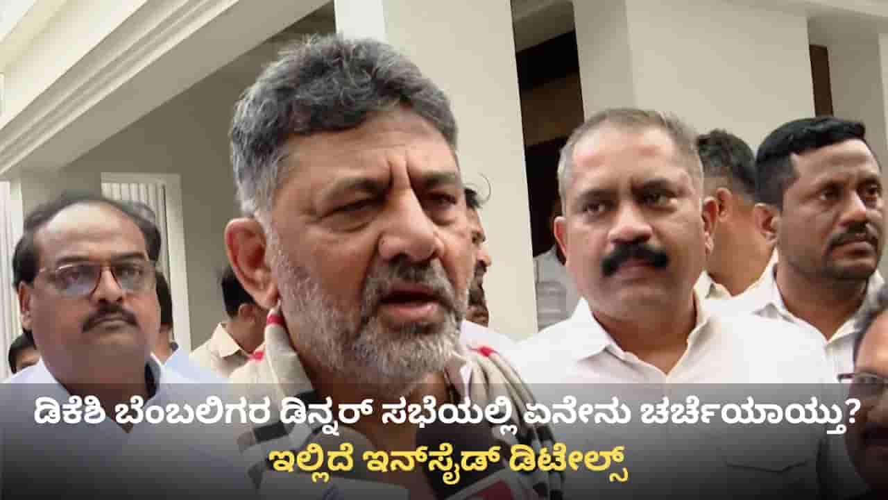 ಬೆಂಗಳೂರು, ಫೆಬ್ರವರಿ 27: ಕರ್ನಾಟಕ ಕಾಂಗ್ರೆಸ್ನಲ್ಲಿ (Congress) ನಾಯಕತ್ವ ಬದಲಾವಣೆ ಕುರಿತ ಚರ್ಚೆ ಮತ್ತೊಮ್ಮೆ ಜೋರಾಗಿರುವ ನಡುವೆಯೇ, ಗುರುವಾರ ರಾತ್ರಿ ಉಪ ಮುಖ್ಯಮಂತ್ರಿ ಡಿಕೆ ಶಿವಕುಮಾರ್ (DK Shivakumar) ಬೆಂಬಲಿಗ ಶಾಸಕರು ಬೆಂಗಳೂರಿನ ಖಾಸಗಿ ಹೋಟೆಲ್ನಲ್ಲಿ ಉನ್ನತ ಮಟ್ಟದ ಔತಣಕೂಟ ಸಭೆ ನಡೆಸಿದ್ದಾರೆ. ಮಾಗಡಿ ಶಾಸಕ ಎಚ್ಸಿ ಬಾಲಕೃಷ್ಣ ಹುಟ್ಟುಹಬ್ಬದ ನೆಪದಲ್ಲಿ ಸಭೆ ನಡೆದಿದ್ದರೂ, ನಾಯಕತ್ವದ ಬದಲಾವಣೆ ಕುರಿತ ಗಂಭೀರ ಚರ್ಚೆ ನಡೆದಿದೆ ಎನ್ನಲಾಗಿದ್ದು, ರಾಜ್ಯ ರಾಜಕೀಯದಲ್ಲಿ ಕುತೂಹಲಕ್ಕೆ ಕಾರಣವಾಗಿದೆ.