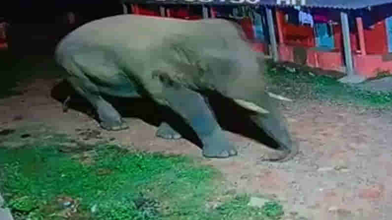 (elephant walking scene is captured on CCTV and people of Mudigere Chikkamagaluru are scared)