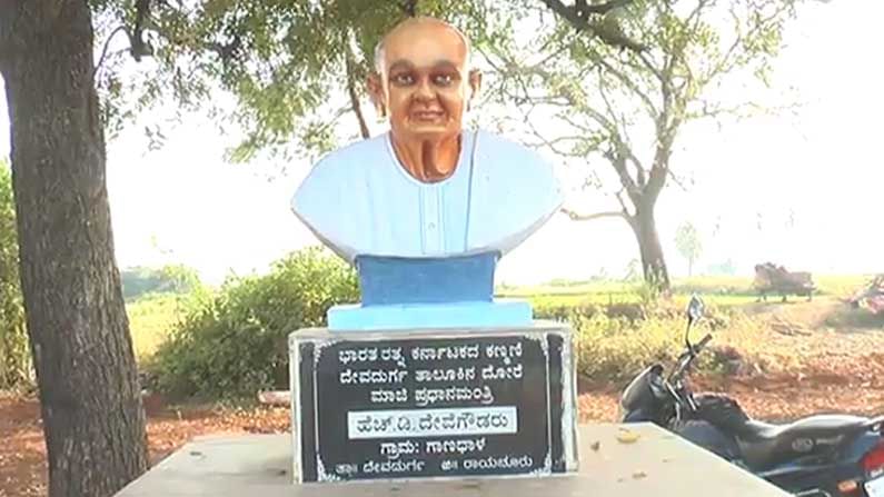 ತನ್ನ 5 ಎಕರೆ ಜಮೀನಲ್ಲಿ 5 ಲಕ್ಷ ರೂ ಖರ್ಚು ಮಾಡಿ ದೇವೆಗೌಡರ ಮೂರ್ತಿ ಪ್ರತಿಷ್ಠಾಪನೆ ಹೌದು ರಾಯಚೂರು ಜಿಲ್ಲೆಯ ದೇವದುರ್ಗ ತಾಲೂಕಿನ ಗಾಣಧಾಳ ಗ್ರಾಮದ ರೈತ ಪ್ರಭುಗೌಡ ತನ್ನ ಜಮೀನಿನಲ್ಲಿ ಮಾಜಿ ಪ್ರಧಾನಿ ಹೆಚ್.ಡಿ.ದೇವೇಗೌಡರ ಮೂರ್ತಿ ಪ್ರತಿಷ್ಠಾಪಿಸಿದ್ದಾರೆ. ಗಾಣಧಾಳ ಗ್ರಾಮದ ಸಮೀಪದಲ್ಲೆ ಇರುವ ತನ್ನ 5 ಎಕರೆ ಜಮೀನಲ್ಲಿ 5 ಲಕ್ಷ ರೂಪಾಯಿ ಖರ್ಚು ಮಾಡಿ ದೇವೆಗೌಡರ ಮೂರ್ತಿ ಪ್ರತಿಷ್ಠಾಪಿಸಿದ್ದಾರೆ. ನಿತ್ಯವೂ ಕೃಷಿ ಚಟುವಟಿಕೆಗೆ ತೆರಳುವ ಮುನ್ನ ರೈತ ಪ್ರಭುಗೌಡ ಮಾಜಿ ಪ್ರಧಾನಿ ದೇವೇಗೌಡರ ಮೂರ್ತಿಗೆ ಭಕ್ತಿಯಿಂದ ನಮಸ್ಕರಿಸಿ ತೆರಳುತ್ತಾರೆ.