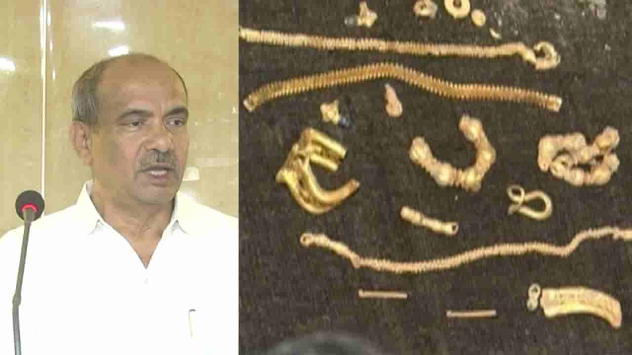 ಗದಗ, ಜನವರಿ 13: ಗದಗ (Gadag) ಜಿಲ್ಲೆಯ ಲಕ್ಕುಂಡಿ ಗ್ರಾಮದಲ್ಲಿ ಮನೆ ಪಾಯದ ಕೆಲಸದ ವೇಳೆ ಚಿನ್ನದ ನಿಧಿ (Gold Treasure) ಸಿಕ್ಕಿದ ವಿಚಾರ ಹತ್ತಾರು ರೀತಿಯ ಚರ್ಚೆಗಳಿಗೆ ಕಾರಣವಾಗಿದೆ. ಈವರೆಗೆ ಅರ್ಧ ಕೆಜಿ ಚಿನ್ನದ ನಿಧಿ ದೊರೆತಿದೆ ಎಂಬ ವರದಿಯಾಗಿತ್ತಷ್ಟೇ ವಿನಃ, ಅದರಲ್ಲಿ ಏನೇನಿದ್ದವು ಎಂಬ ಮಾಹಿತಿ ಇರಲಿಲ್ಲ. ಇದೀಗ ಗದಗ ಜಿಲ್ಲಾಧಿಕಾರಿ ಆ ಬಗ್ಗೆ ವಿವರವಾದ ಮಾಹಿತಿ ನೀಡಿದ್ದಾರೆ. ನಿಧಿಯಲ್ಲಿ ಏನೇನು ಆಭರಣಗಳಿದ್ದವು ಎಂಬುದನ್ನು ಜಿಲ್ಲಾಧಿಕಾರಿ ಸಿಎನ್ ಶ್ರೀಧರ್ ಬಹಿರಂಗಪಡಿಸಿದ್ದಾರೆ.